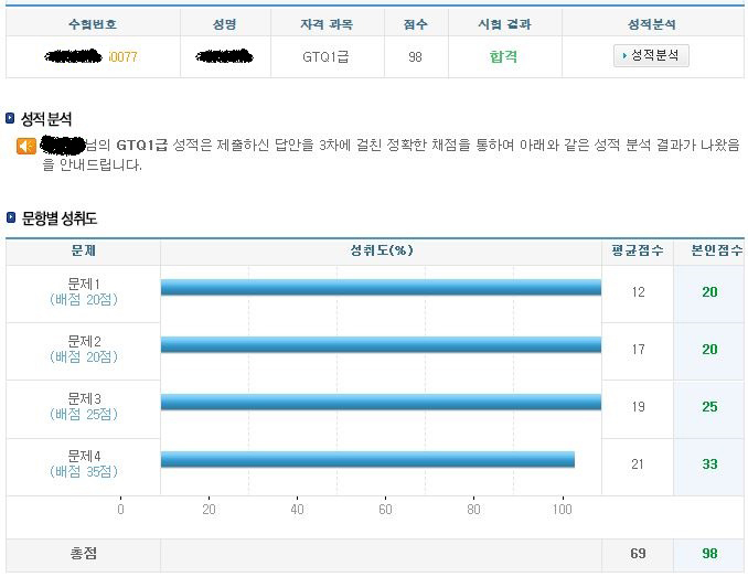 합격은 예상했는데 결과를 보니 4번 모양 툴 그리는 거 빼고 감점이 없었습니다.