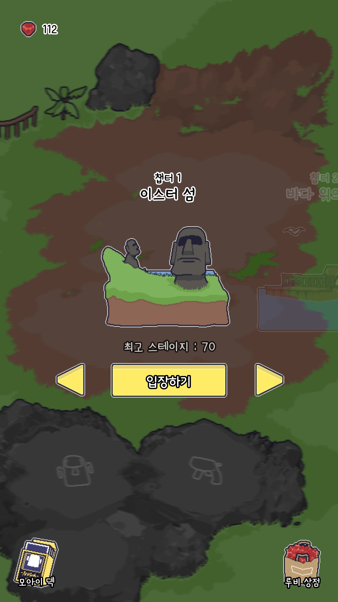 첫 번째 챕터 이스터 섬. 저는 70스테이지까지 갔지만, 저것도 끝이 아니에요. 스테이지가 무한인건지 아니면 끝이 있긴 한건지 그건 잘 모르겠어요.