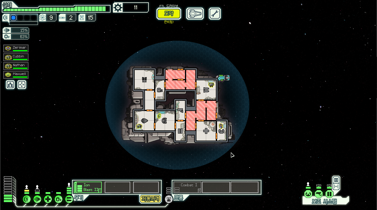 그리고 자원은 함선을 업그레이드 하는데도 사용하기 때문에 함부로 사용하면 안 되고, 저 같은 경우 초반에는 실드와 공격수단 그리고 문을 강화합니다. 또 각각 반응로 에너지를 소비하기 때문에 활성화하기 위해서 반응로 에너지도 올려주셔야 해요.