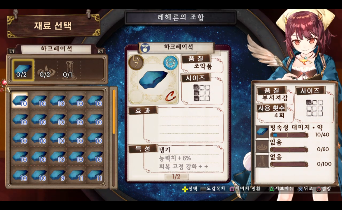 재료는 만드는 아이템에 따라 선택할수 있는 재료도 달라집니다.