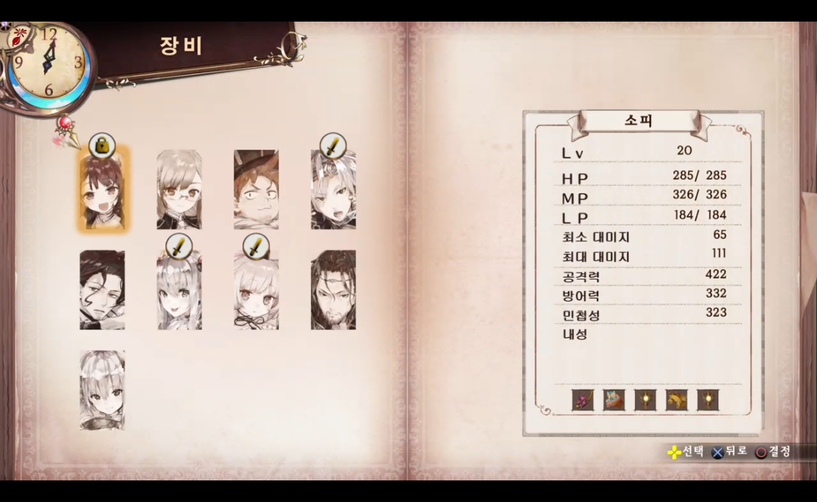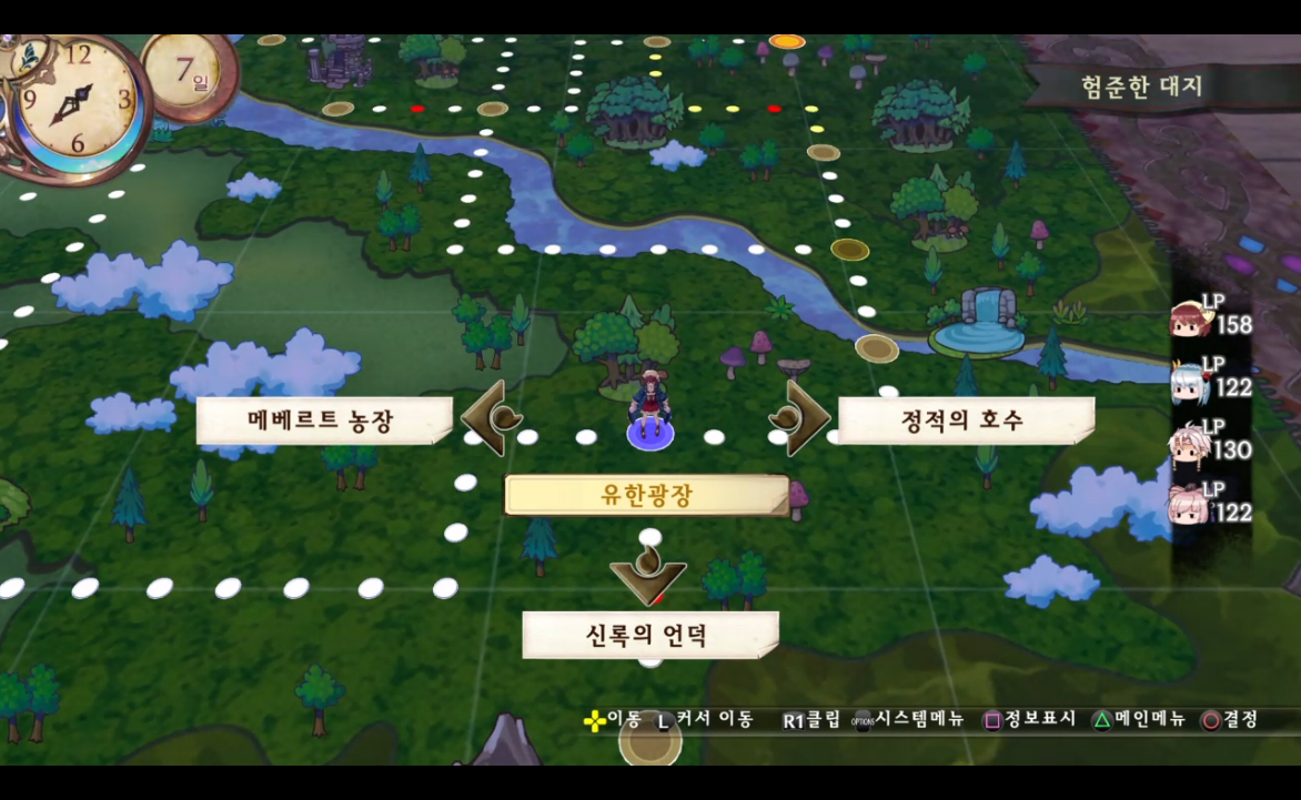 맵을 이동할때는 시간이 흐른다고 했는데 오른쪽에 또 'LP'라는것이 있습니다. 이건 피로도 라고 보시면 되고, 피로도가 바닥나게 되면 캐릭터가 약화됩니다.