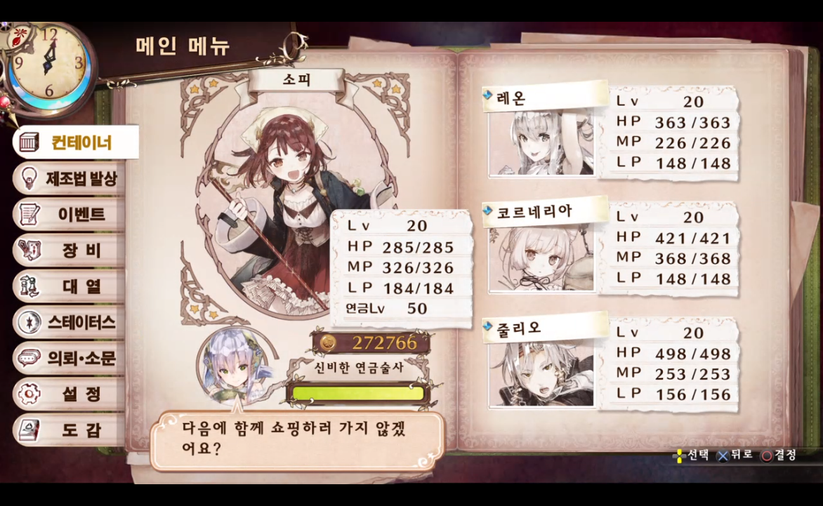 '소피의 아틀리에'는 거스트에서 만든 턴제 RPG 게임으로, 2016년 3월 17일날 한국에 출시 됐습니다. 플레이타임은 메인스토리 진행만 40시간에 육박하는 상당한 플레이타임으로 사람들 사이에서 호평을 받았던 게임입니다. 거기에 노가다 요소가 들어있어 개인적으로 플레이타임은 그 이상이라고 봅니다.