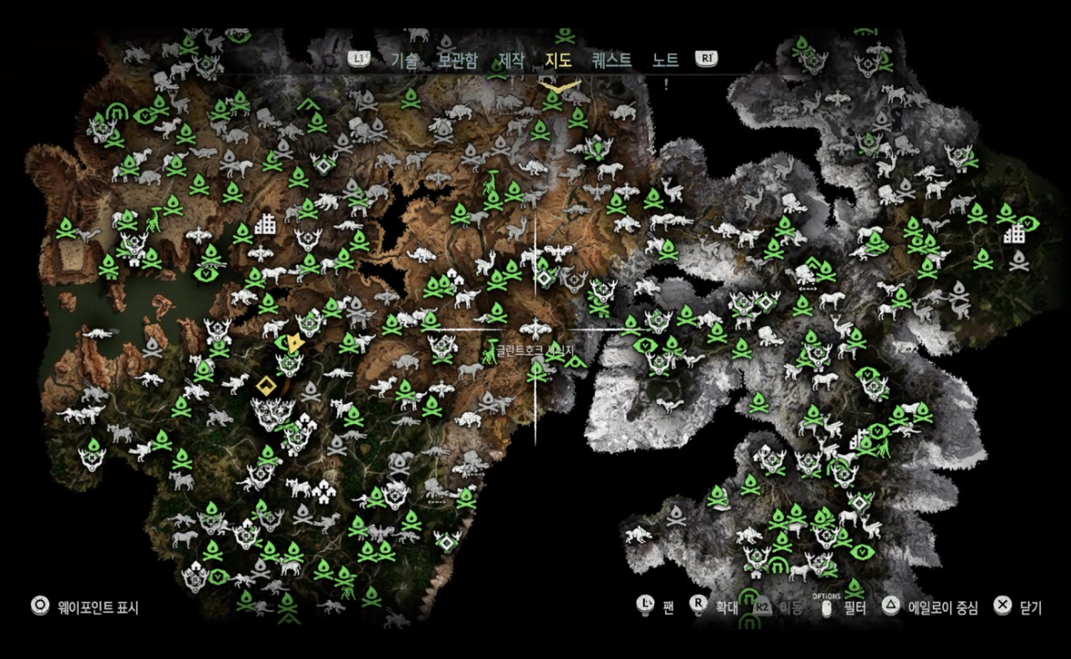 이건 DLC의 맵 크기인데요. 본편에 비하면 크기가 작은만큼 플레이타임도 8시간정도 됩니다. 저는 본편을 클리어하고 진행하여 시작하자마자 갈 수 있는지는 모르겠으나, 본편보다 몬스터가 훨씬 강하므로, 본편을 클리어하면서 장비를 맞추고 가시는 걸 추천드립니다. 그리고 모닥불은 지도상 원래 회색인데, 가까이 가면 녹색으로 활성화되는데요. 활성화 시 빠른 이동이 가능하므로, 모두 활성화하시는 걸 추천드립니다.