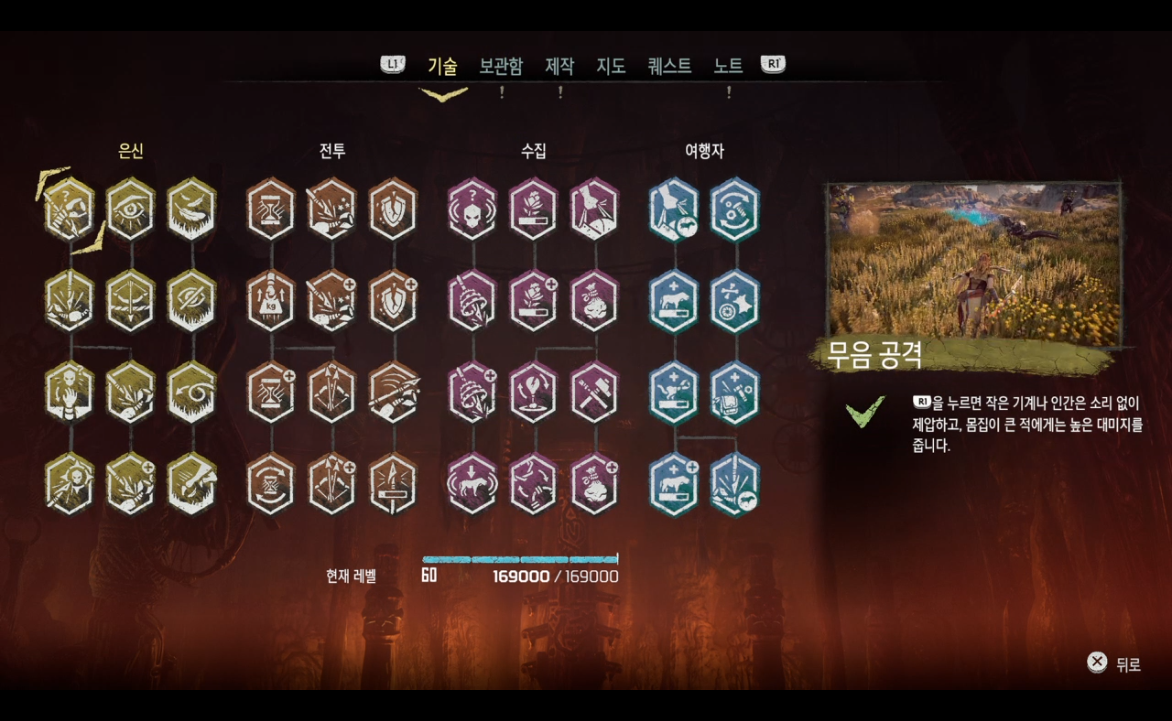 기술에서 포인트를 투자하여 스킬을 찍을 수 있으며, 포인트는 레벨을 올릴 때 얻을 수 있는데요. 결과적으로 만렙 달성 시 스킬들을 모두 찍을 수 있습니다. 하지만 스킬을 모두 찍을 수 있다고 해도 레벨이 낮을 땐 우선순위를 정하여 찍어주시는게 좋습니다.