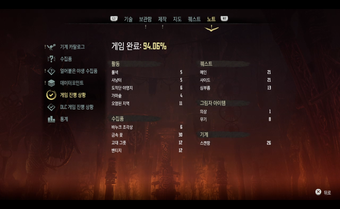 제 계정 본편 진행도 입니다. 본편을 진행하면서 느꼈던 단점이라면 후반으로 가면 거의 무쌍이 가능해서 긴장감이 없다는 것과 게임 진행 중 캐릭터가 대사를 할 경우 대사와 입술이 잘 맞지 않는 부분은 약간 아쉬움이 남았습니다.