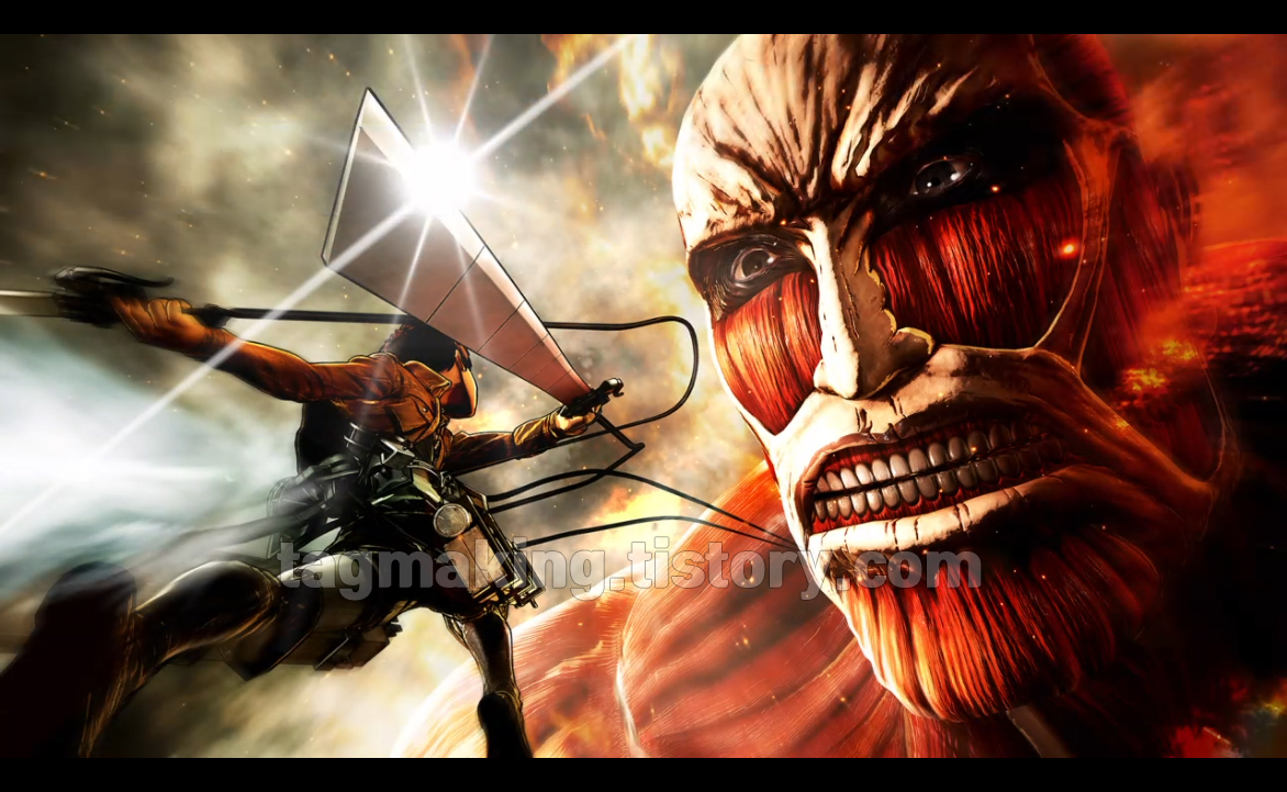 이건 제가 플레이 하며 찍은 영상인데, 이동 시 말을 탈 수 있는곳도 있는데, 일반 모드에서는 필요 없지만 '진 진격모드'에서는 이동할때 가스 소모를 아끼기 위해 말을 타고 이동해야 합니다. 진 진격모드는 이동 시 가스 소모량이 커지고, 공격 시 칼날 소모량이 커집니다. 따라서 장비를 많이 업그레이드를 해야 플레이 할 수 있습니다. 거인은 목 뒤를 공격해야 하며, 가끔 강력한 거인들은 목을 제외한 팔과 다리 부위파괴를 해야 목 뒤를 공격할 수 있습니다.