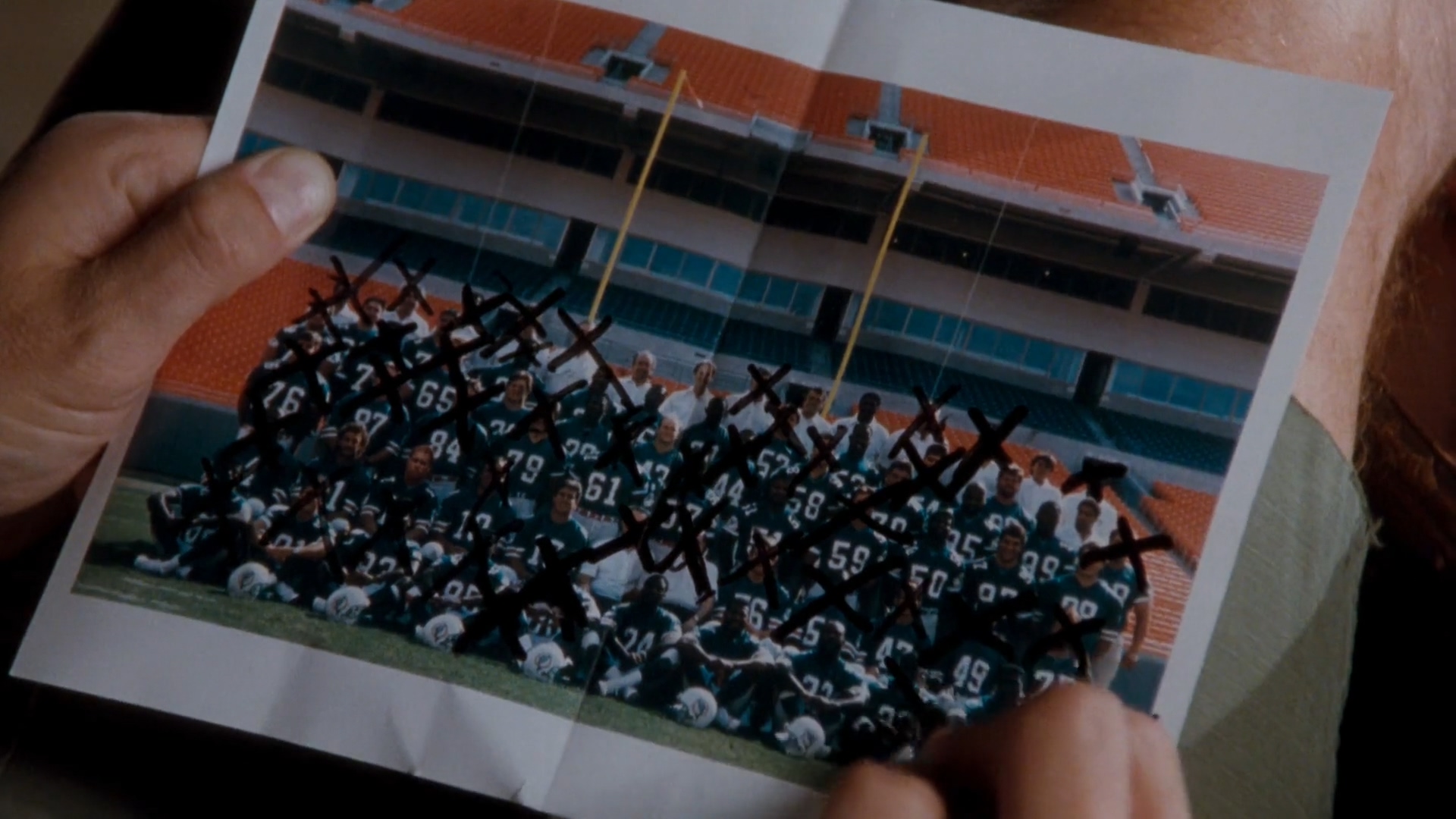 찾아본 결과 그 보석은 마이애미 돌핀스의 1984년 우승 기념 반지에서 떨어져 나온 보석인 사실을 알아내고 용의자를 특정하여 수사를 시작합니다.