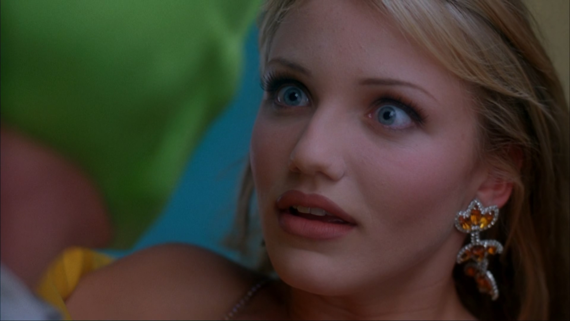 하지만 그날 밤 자신이 짝사랑하는 클럽 가수 티나(카메론 디아즈)를 만나기 위해 다시 한번 마스크의 힘을 빌립니다. 그리고 이 과정에서 스탠리는 은행을 털게 되는데, 공교롭게도 그날 밤 은행을 털려했던 도리안의 갱단과 엮이게 되어 일이 꼬이기 시작합니다. 이 영화는 사실 짐 캐리도 짐 캐리지만, 여 주인공인 카메론 디아즈가 상당히 매력적으로 나오기 때문에 한 번 보시는 걸 추천드립니다.