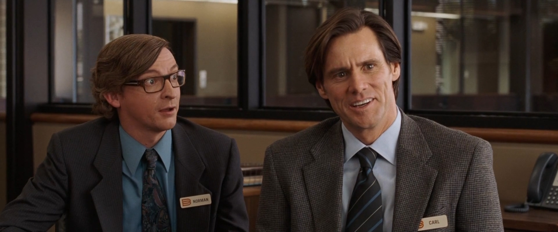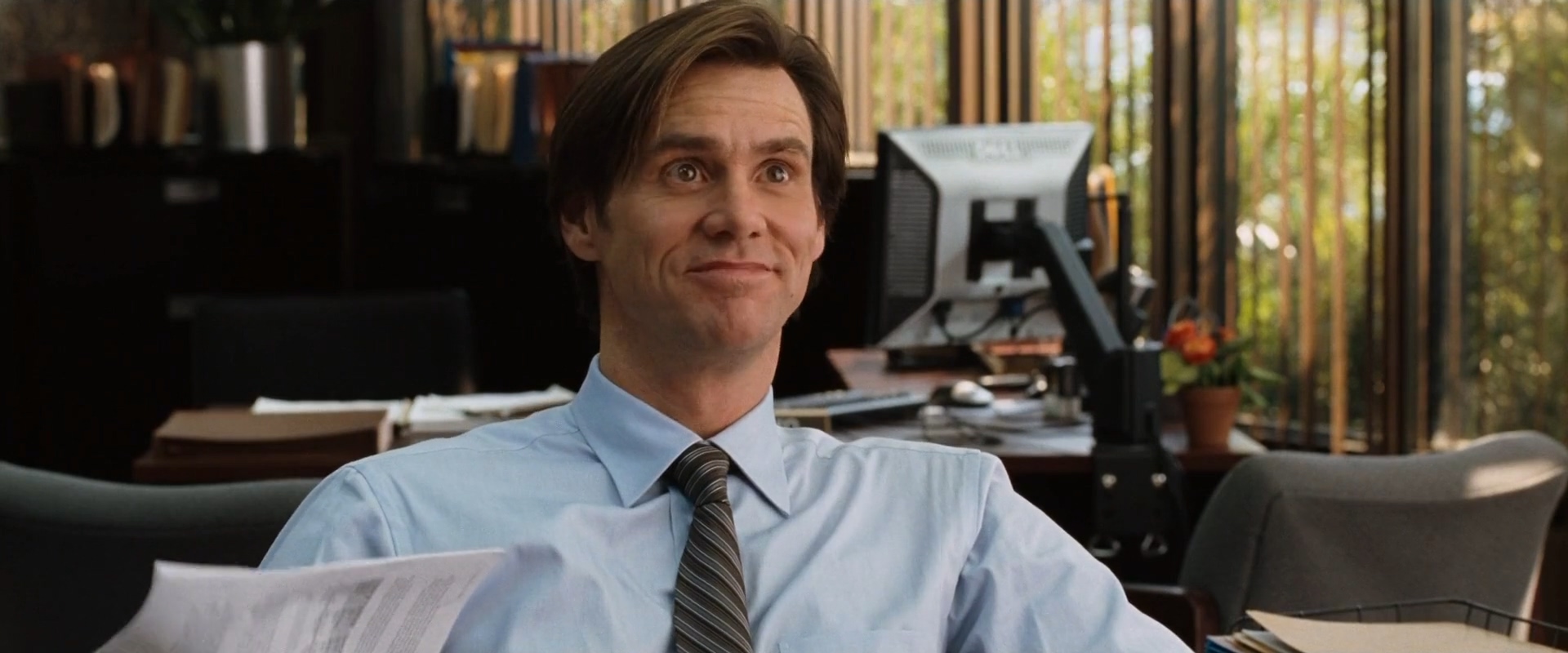 은행에서 대출업무를 보는 칼 알렌(짐 캐리)은 모든 일에 항상 부정적이며, 대인관계에 있어서 방어적인 남자입니다. 그런 성격 탓인지 부인과는 이혼하고, 승진에도 실패하는데요. 어느 날 그에게 옛 친구 닉 레인(존 마이클 히긴즈)이 칼에게 자신이 다니고 있는 세미나를 소개해줍니다. 대수롭지 않게 넘어갔지만, 어느 날 혼자 쓸쓸하게 죽는 꿈을 꾼 칼은 달라지기로 결심하고 그 세미나에 참석을 합니다.