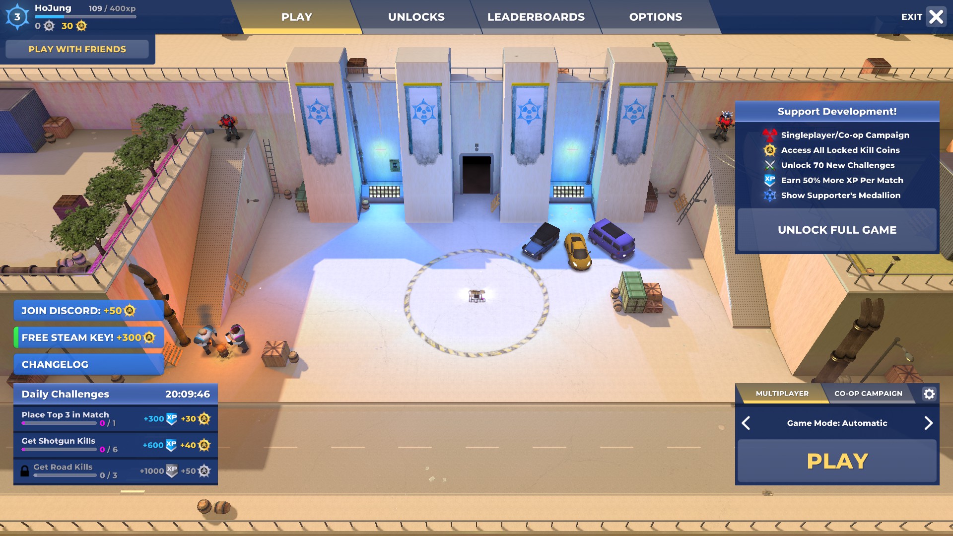 스팀에서 무료 배포한 게임 'Geneshift : Battle Royale Turbo'을 플레이해봤습니다. GTA2에서 영감을 받은 게임답게 GTA2처럼 탑 다운 방식이며, 여기에 요즘 유행하는 배틀 로얄 방식을 더해 자기장 시스템이 적용되어 있었습니다. 하지만 점수는 짧은 플레이 후 0점을 줬는데요. 이유는 아래에서 설명하겠습니다.