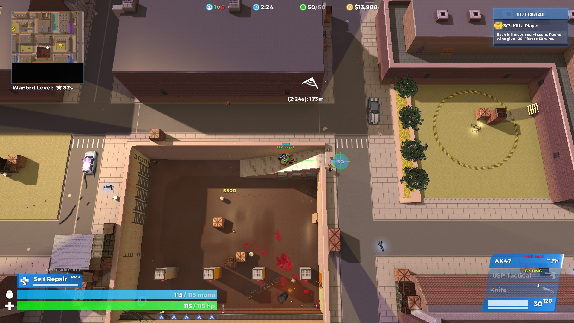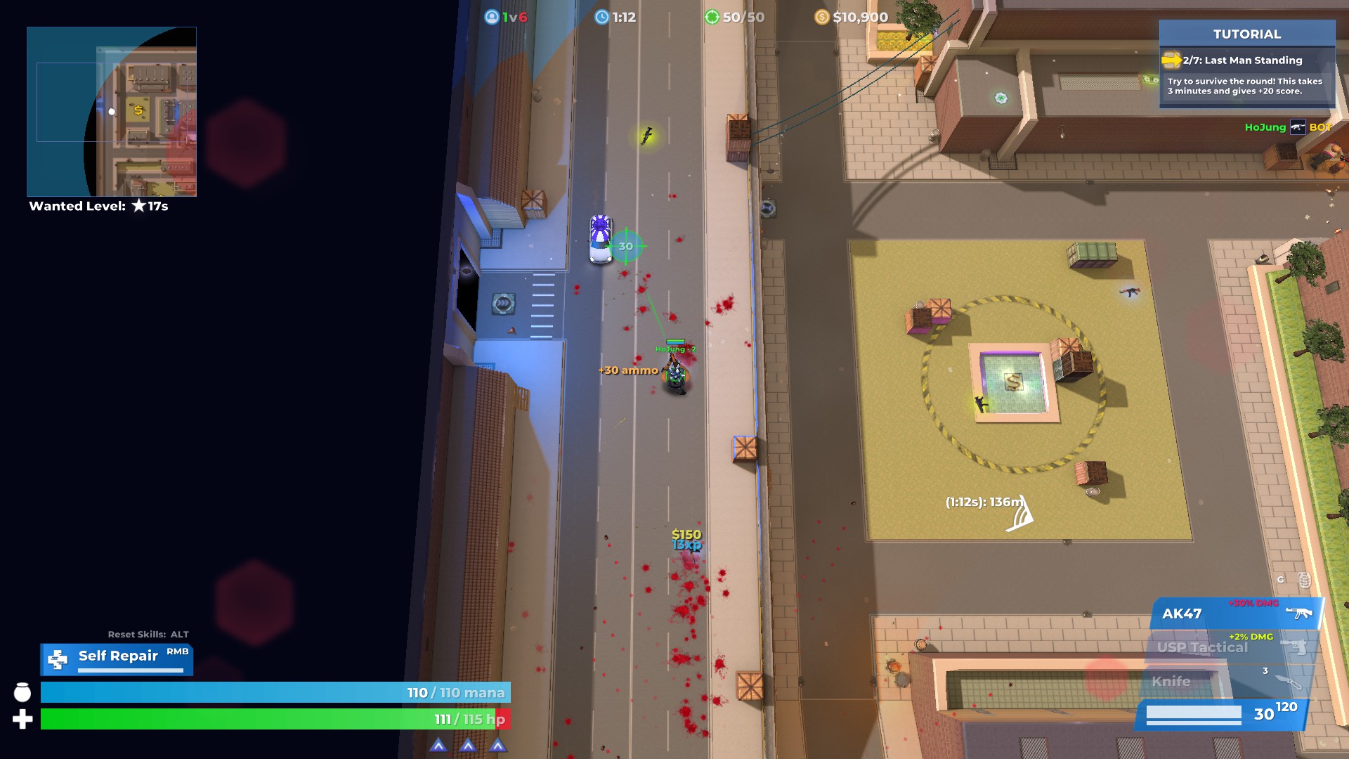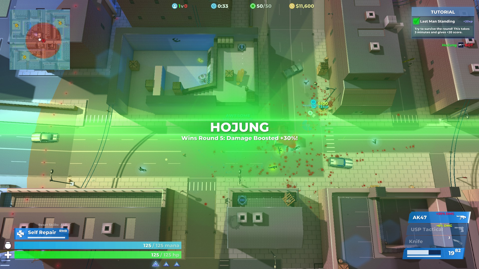 우선 한국어를 지원하지 않는데, 이건 굳이 상관없는 듯합니다. 배틀 로얄의 특성상 굳이 플레이하는데 지장이 없으며, 스킬을 찍을 때만 조금 불편한 정도인데 그마저도 간단한 영어 수준이라 불편함 없이 게임 진행이 가능합니다. 그리고 꽤 자세한 튜토리얼도 있습니다.