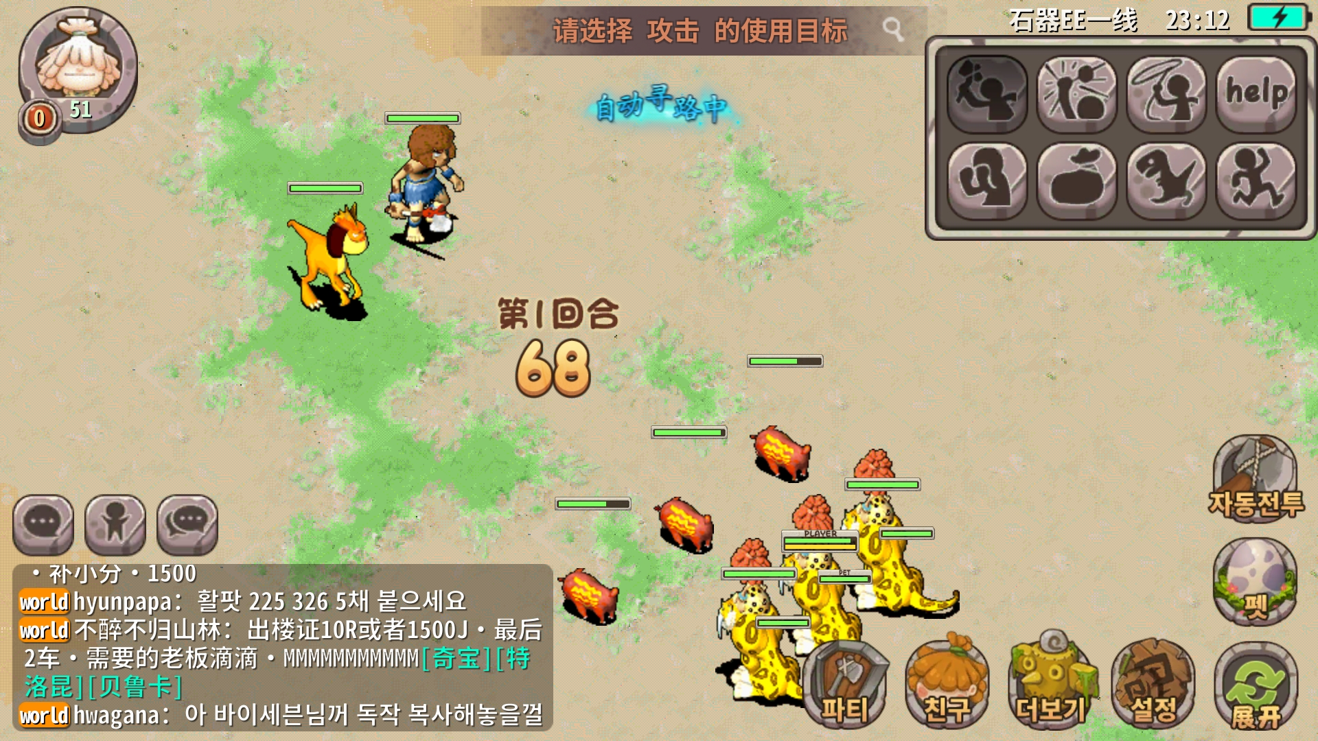 이 게임의 편리한 점은 사냥터를 워프로 이동이 가능해서 레벨업이 빠릅니다. 또 무엇보다 좋은 점은 pc버전의 스톤에이지는 몬스터를 직접 죽이지 못하면 경험치를 얻지 못해서 다굴이 필수였는데, 이 게임은 참가만 하면 경험치를 나눠 받아요.