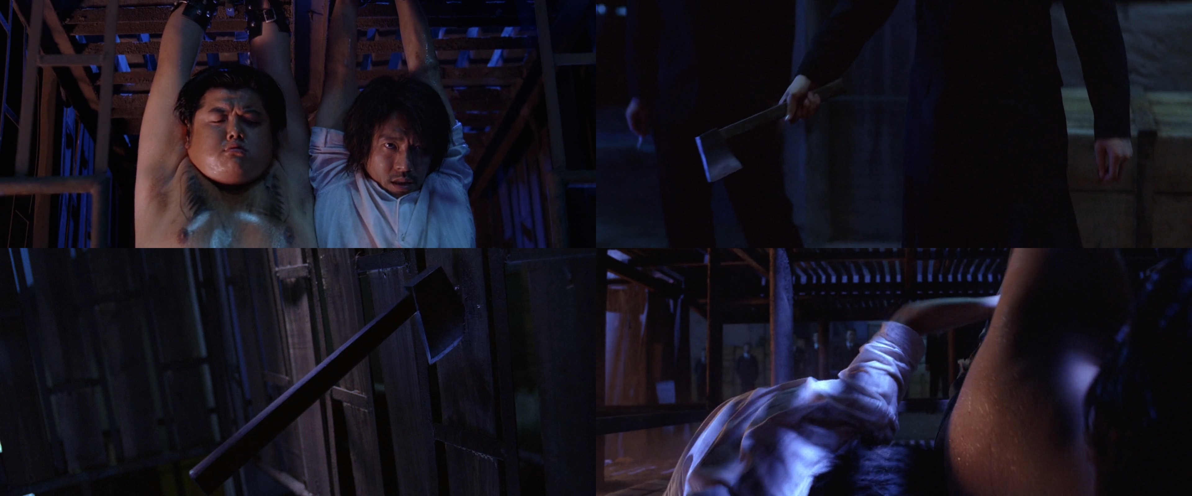 도끼파는 사건의 원인인 두 사람을 잡아서 매달아 도끼를 던지는데, 그 짧은 시간에 싱은 자신의 장기인 자물쇠 따기를 이용하여 위기를 탈출합니다. 이 능력을 높이 산 도끼파의 두목(진국곤)은 둘을 놓아주는데요.