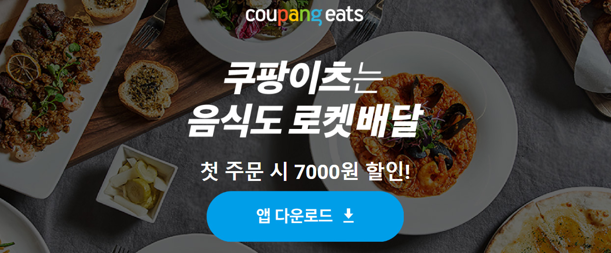 여태 배달앱은 요기요, 배달의 민족만 사용했었는데 작년에 배달의 민족이 요기요에 인수되면서 독과점이 된 후 보인 행보 때문에 소비자들에게 반감을 사게 됐고 저도 굳이 앱이 필요한 건 아니었으니 삭제하게 됐습니다. 그래서 요즘은 보통 전화 주문을 하거나 직접 나가서 사 오는데요. 쿠팡에서 지금 이 상황을 노렸는지 작년에 출시한 배달앱 '쿠팡 이츠'의 마케팅으로 첫 주문 7천 원 쿠폰을 준다고 해서 써봤습니다.