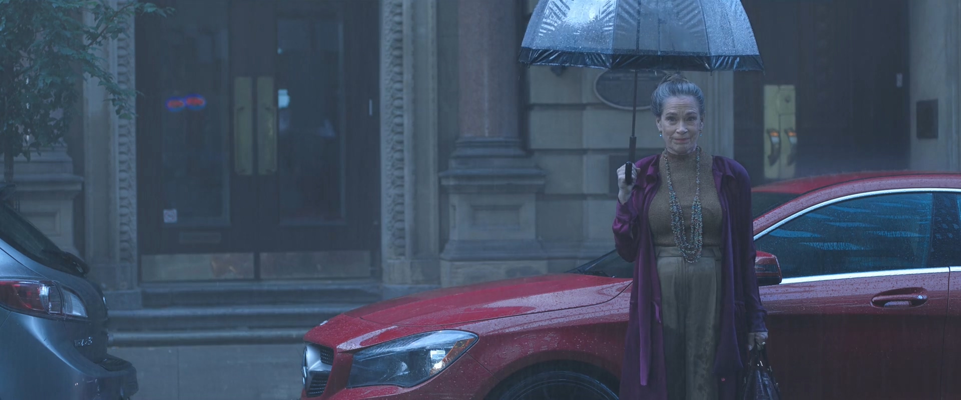 맞은편에 서있는 한 할머니도 택시를 기다리는 듯 보이고, 마침 멀리서 택시가 다가오자 두 사람은 택시를 향해 달리기 시작합니다.