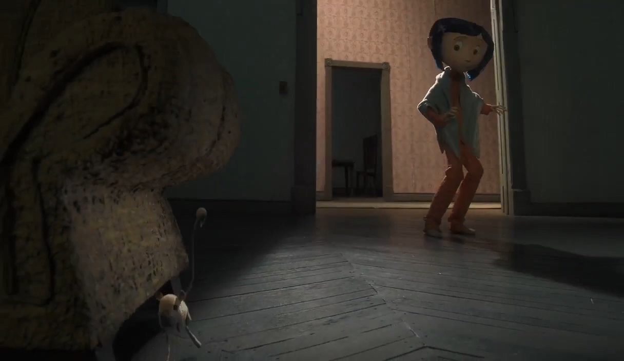 그리고 시간은 흘러 그날 밤. 코렐라인은 잠들기 전 자신의 침대 밑에서 쥐를 발견하고 그 뒤를 쫓아가는데요.