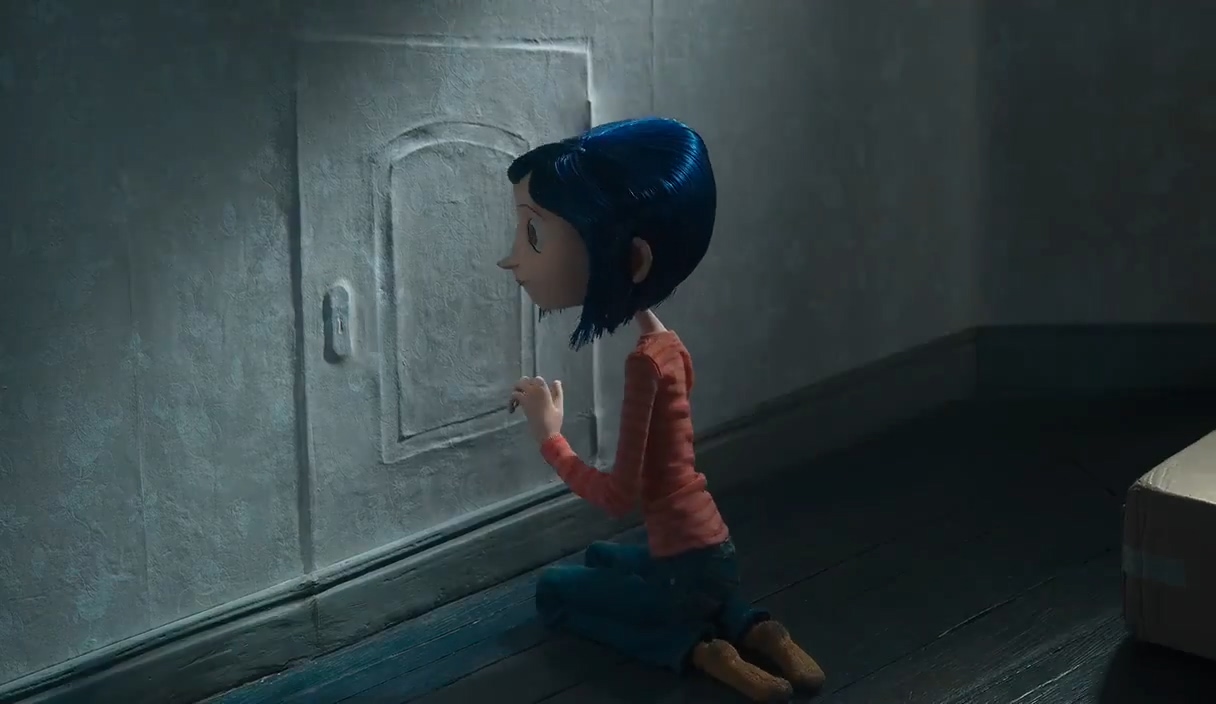 코렐라인은 새로운 집을 구경하던 중 벽지 뒤로 보이는 작은 문 하나를 발견하고 엄마에게 문을 열어달라 부탁하는데요.