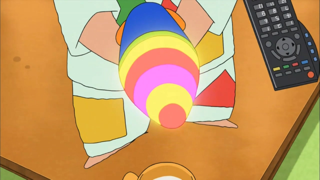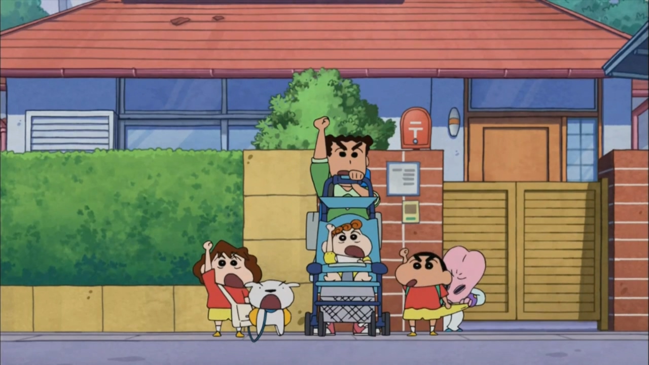 집에서 하늘을 보던 짱구네 가족. 떨어지는 별똥별을 보고 소원을 빌려하는데 별똥별인 줄 알았던 물체가 요리조리 움직이더니 2층 지붕으로 추락하게 됩니다.