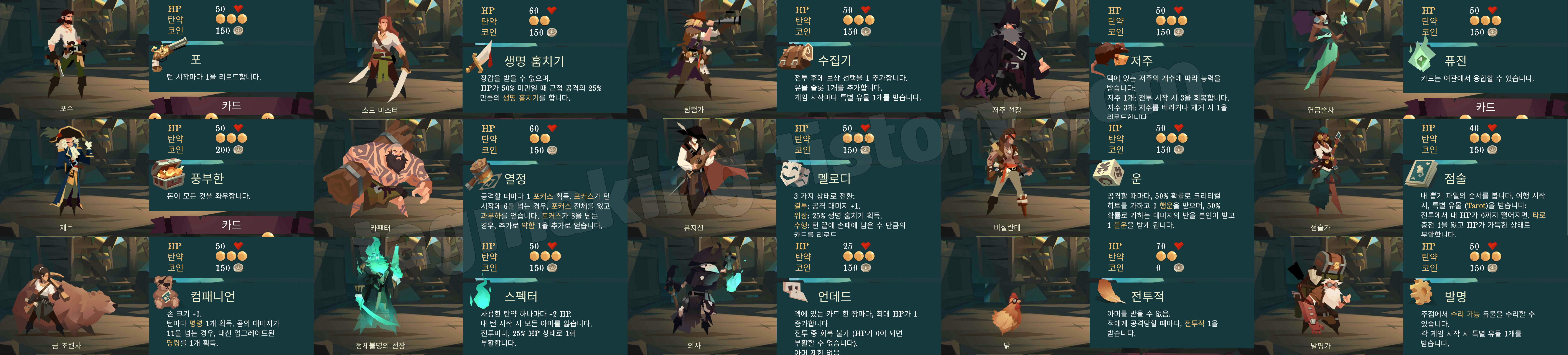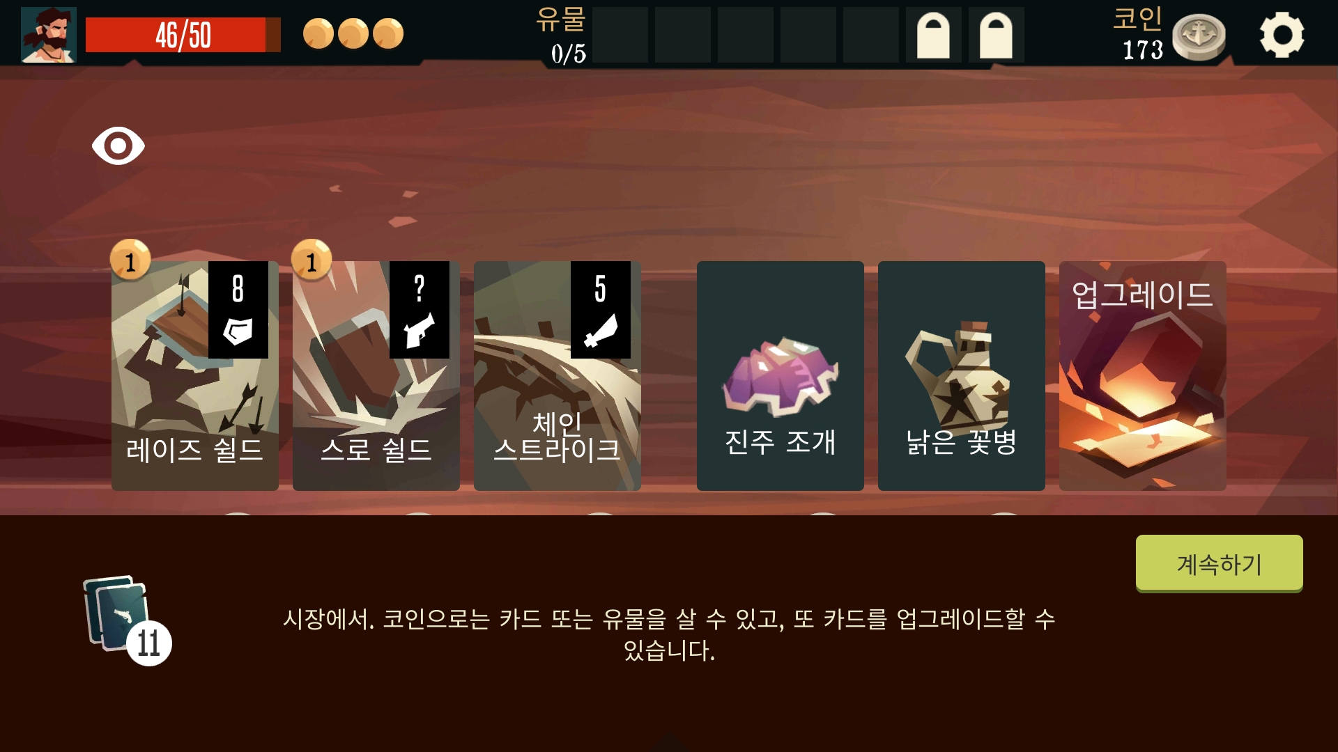 또 게임 중간중간 상점에서는 코인으로 유물을 구매하거나 카드를 구매하고 업그레이드할 수 있으며, 여관의 경우 코인을 소모하여 캐릭터의 체력을 회복할 수 있습니다.