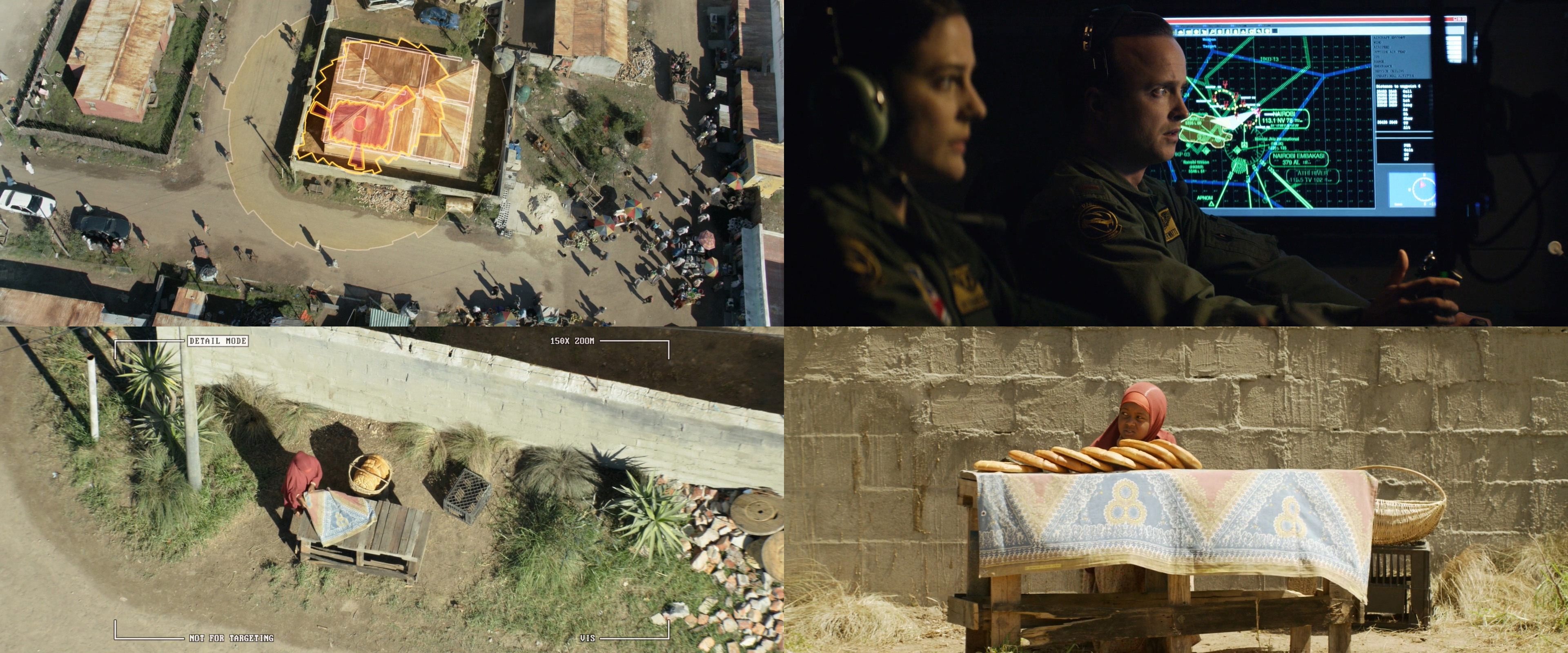작전 변경에 따라 테러범들을 잡기 위해 폭탄을 투하하려는 순간 파일럿인 스티브 와츠 중위(아론 폴)의 눈에 피해 범위 안에서 빵을 팔고 있는 한 소녀가 보이게 됩니다.