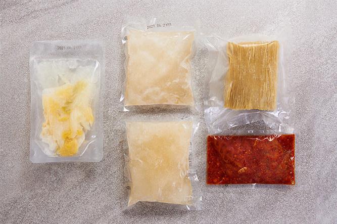특이한 점은 제품이 냉동 보관입니다. 그래서 면에 주정 처리를 안 할 수 있었나 봐요. 면은 오래 삶으면 퍼지기 때문에 잠깐 삶아서 살짝 먹어보고 판단하세요. 그런데 먹어보면 정말 그냥 시켜먹는 냉면이랑 별 차이가 없습니다. 코다리 양념에 생강이 약간 들어있어서 그게 씹히면 좀 별로긴 해요.