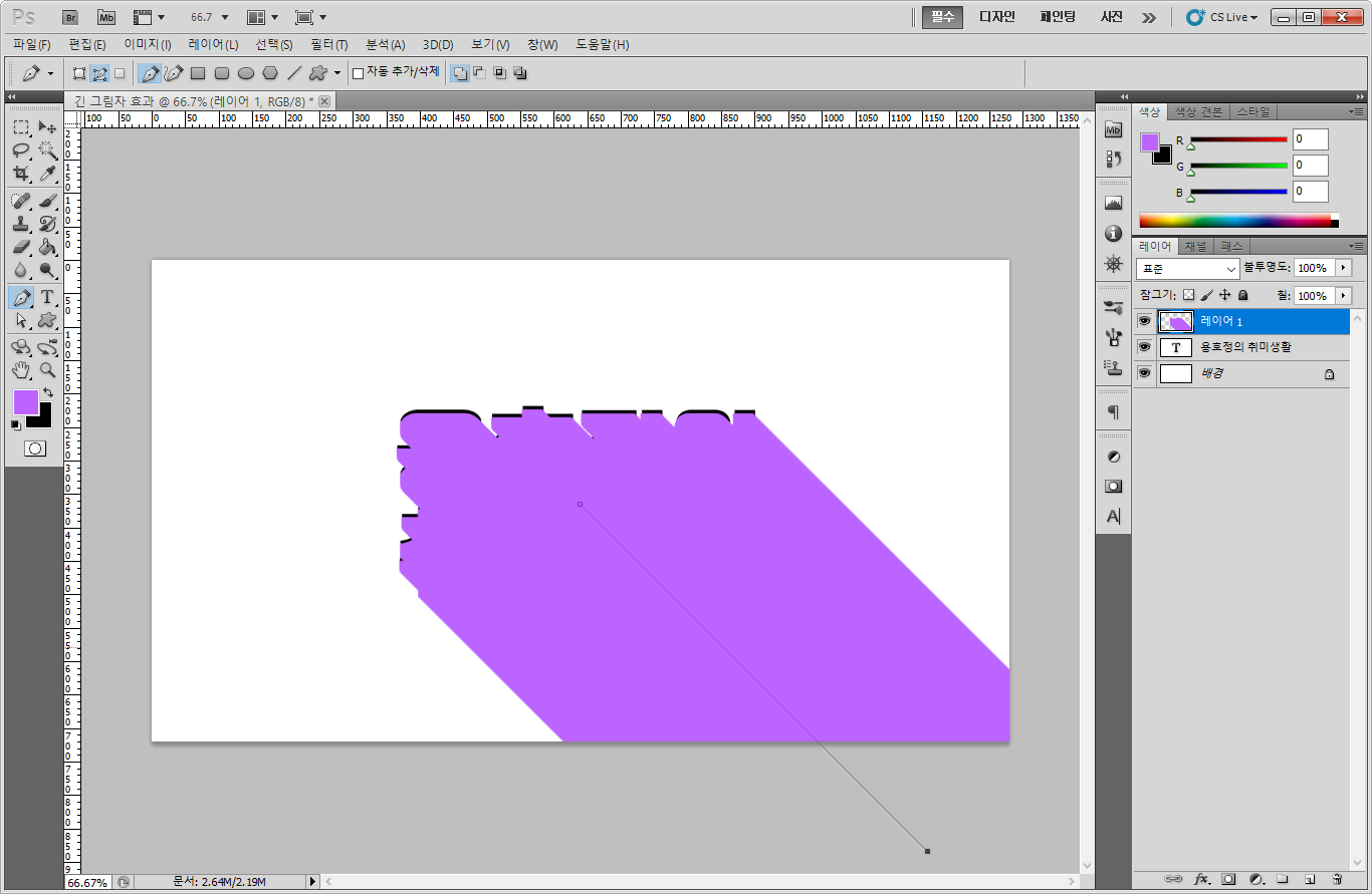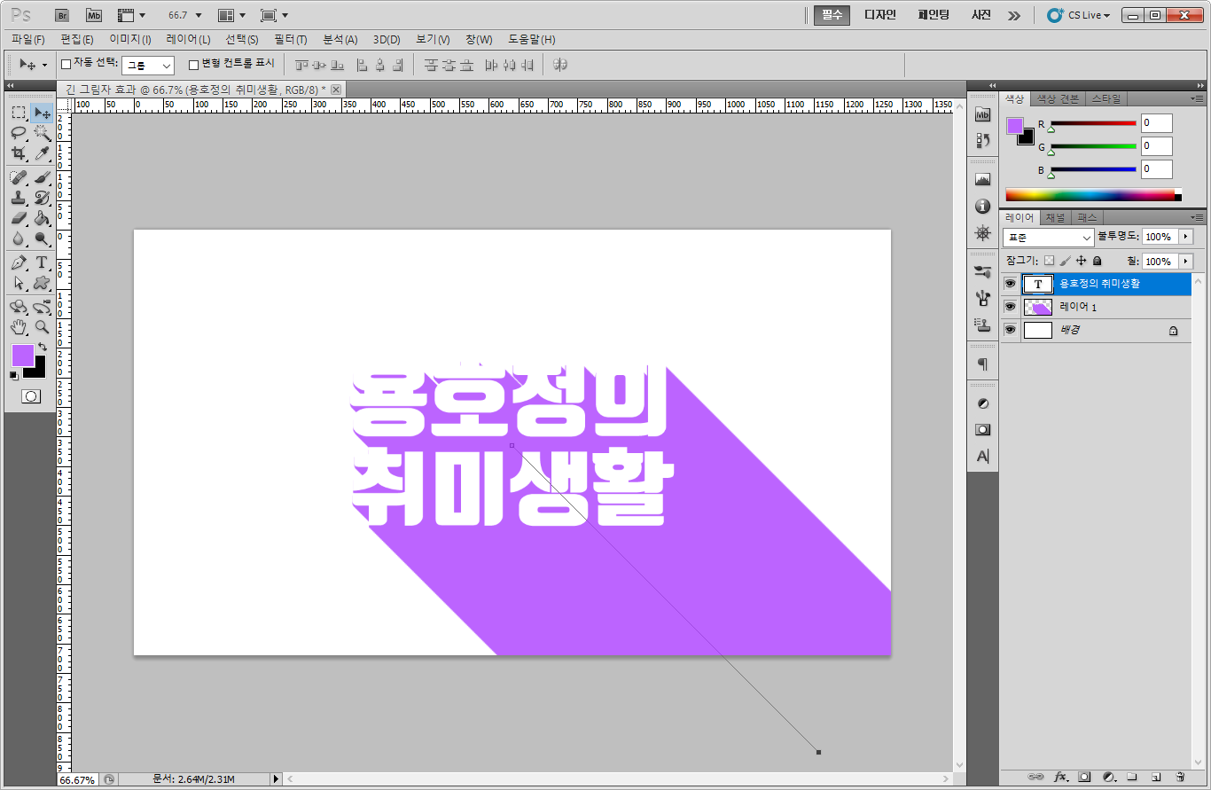 오늘은 이런 식으로 글씨에 긴 그림자 효과를 넣는 방법에 대해 알아보겠습니다.
