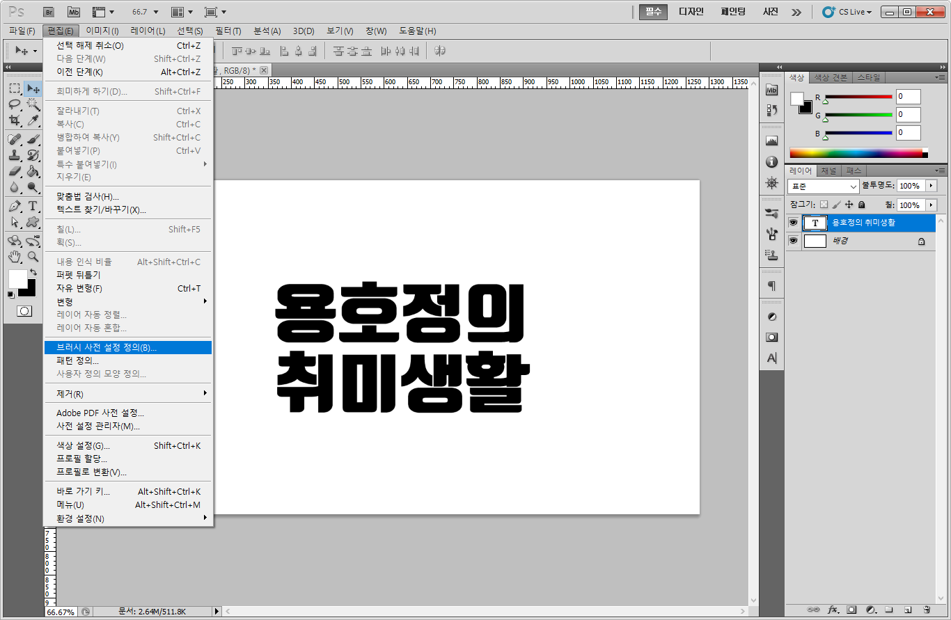 이제 편집 - 브러시 사전 설정 정의를 눌러주세요.