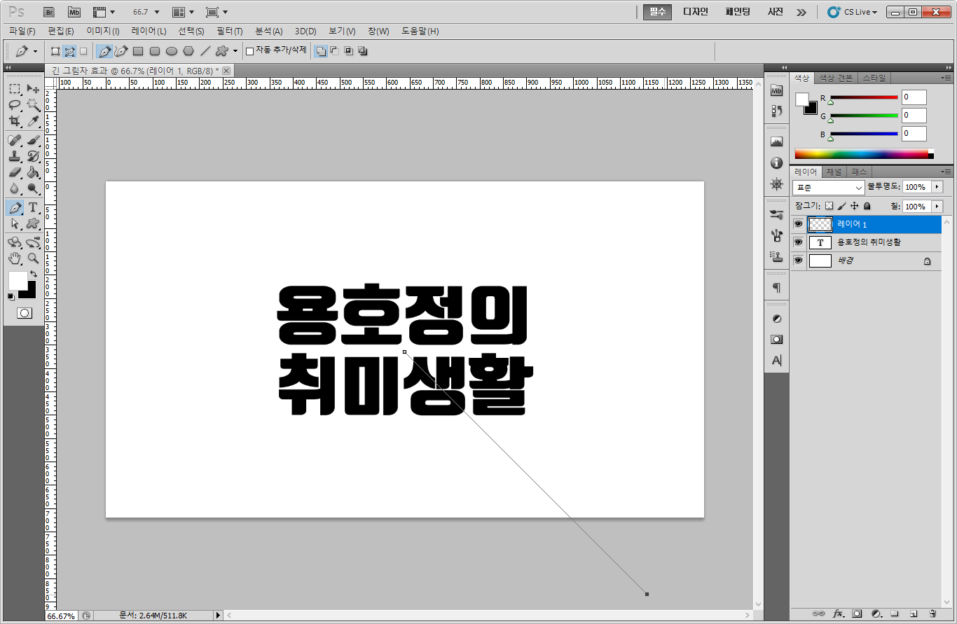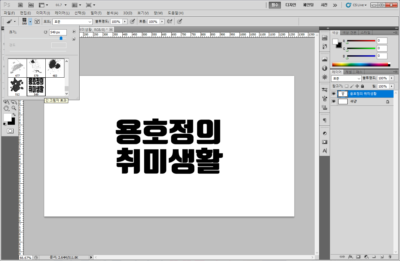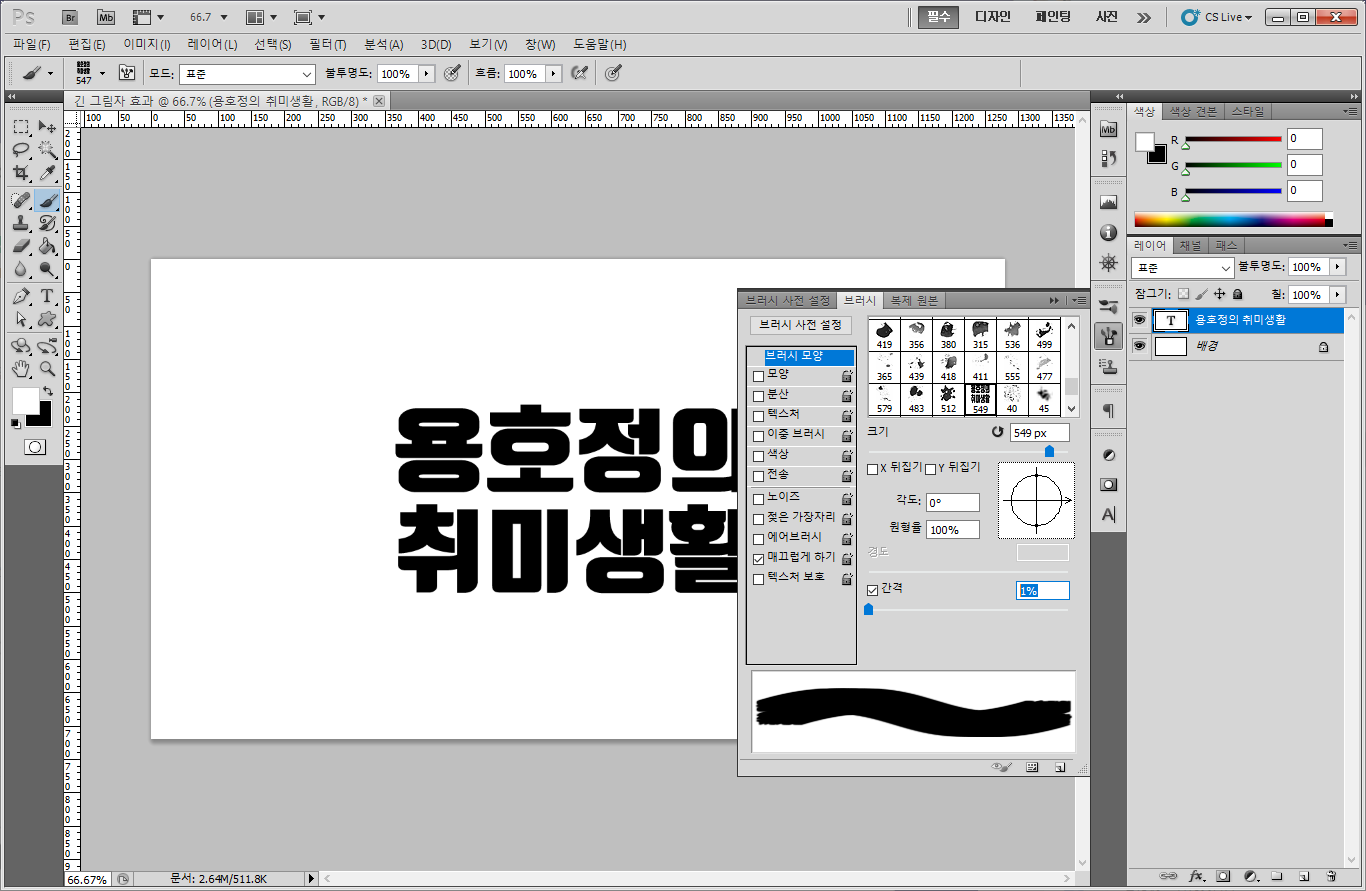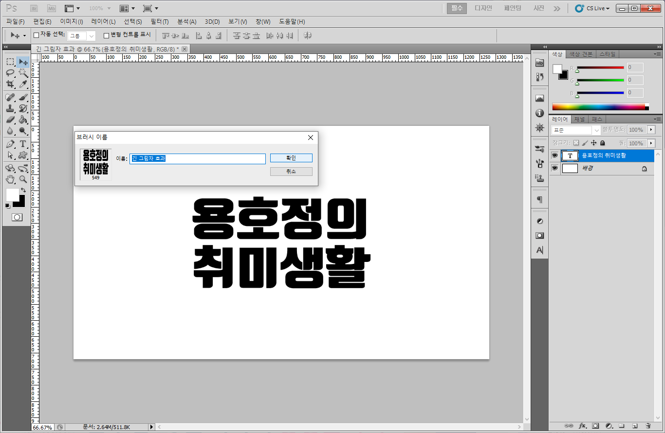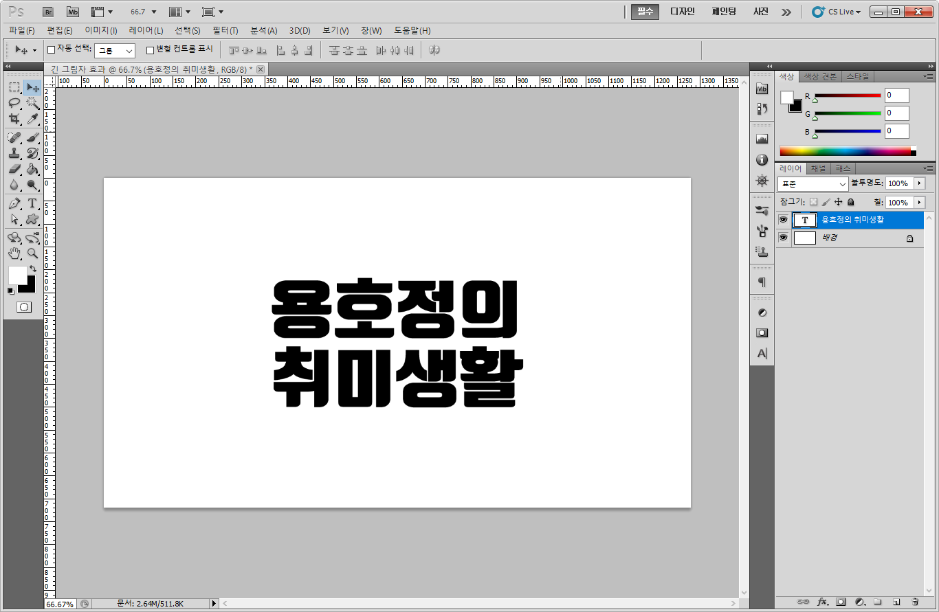 여기까지 하셨으면 일단 완성이고, 다른 옵션을 추가해서 글씨를 더 꾸미시면 됩니다.