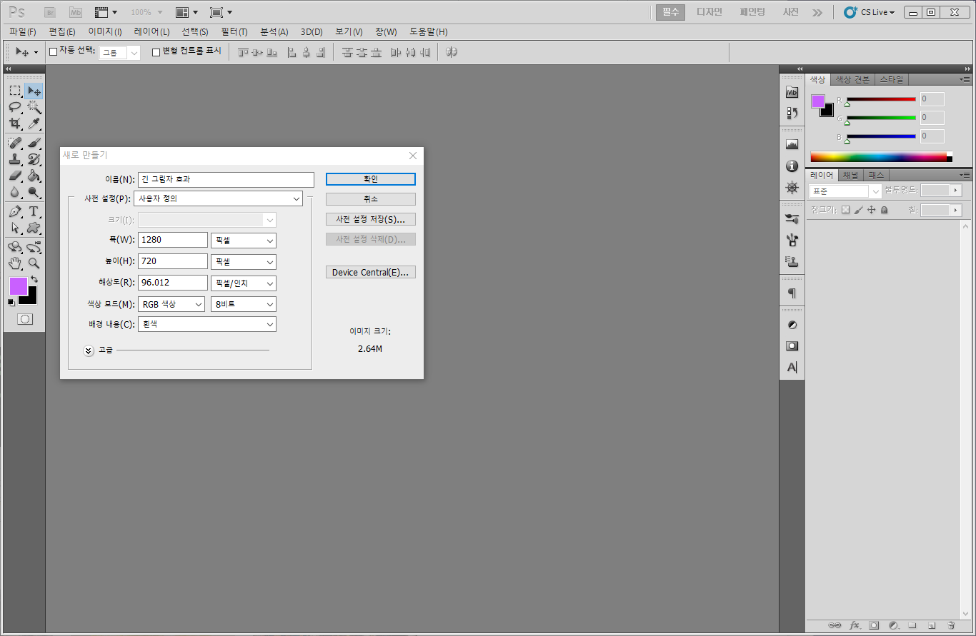 일단 유튜브 썸네일 크기에 해당하는 1280x720으로 캔버스를 하나 만들어주세요. (단축키 Ctrl + N)