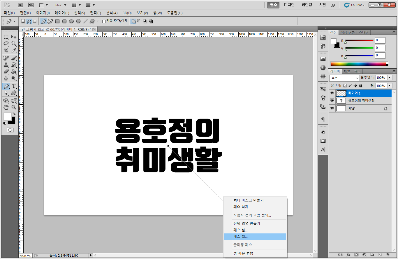 이제 마우스를 우클릭하여 패스 획을 눌러줍니다.