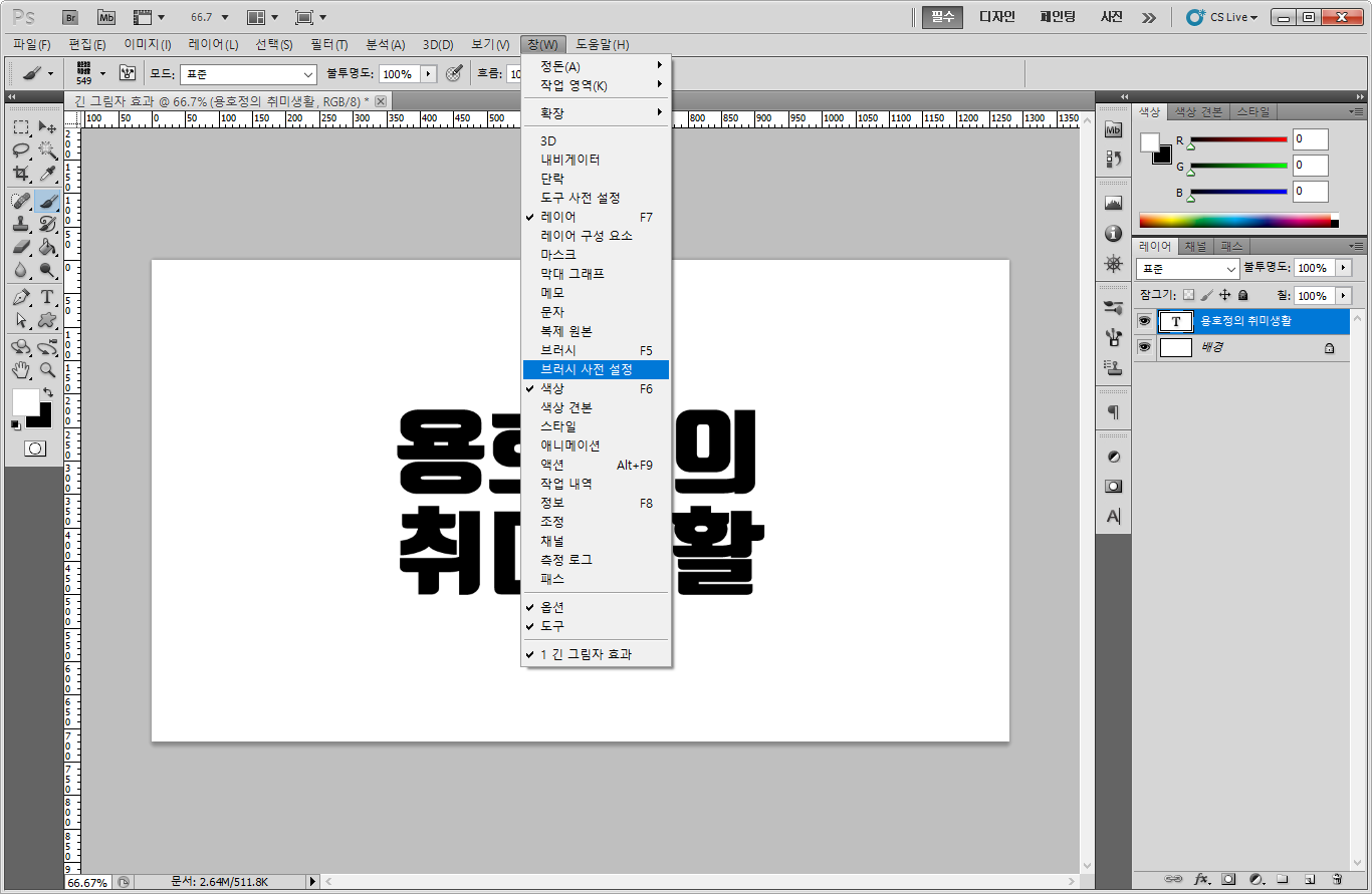 그리고 창 - 브러시 사전 설정을 눌러줍니다.