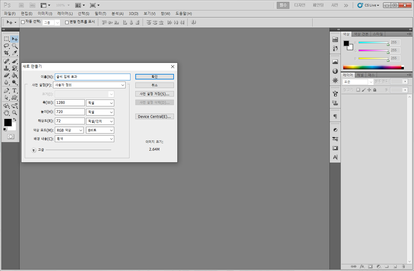 일단 유튜브 썸네일 크기에 해당하는 1280x720으로 캔버스를 하나 만들어주세요. (단축키 Ctrl + N)