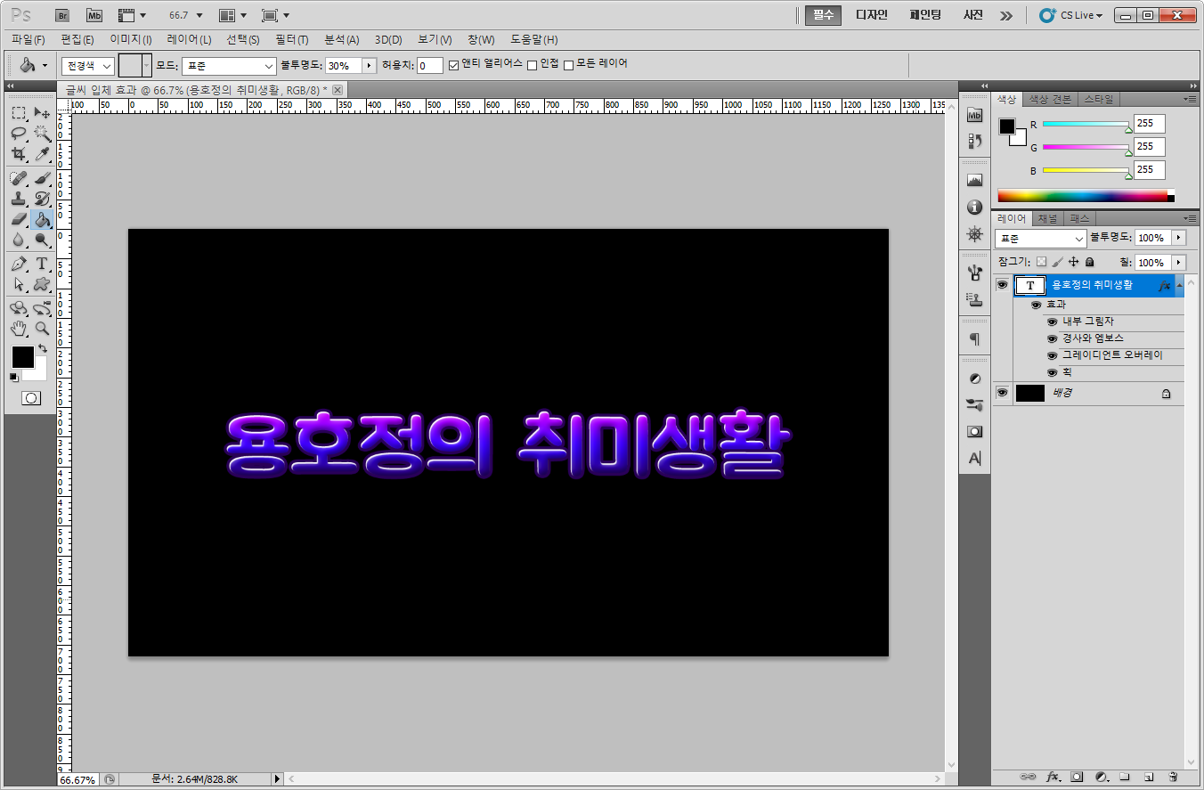 여기에 저번에 올렸던 글씨에 빛 효과 주는 법까지 적용시키면 더 높은 퀄리티의 글씨를 만드실 수 있습니다.
