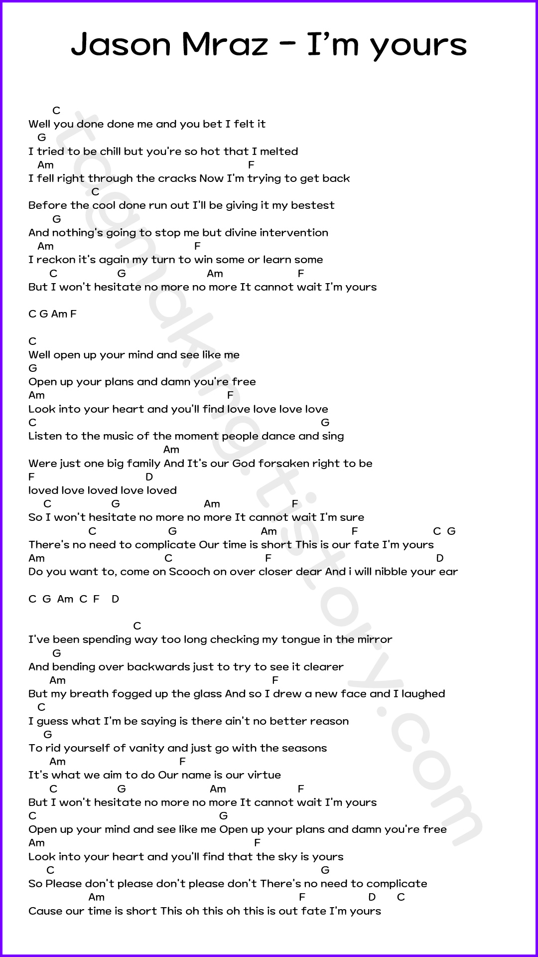 오늘은 제이슨 므라즈의 I'm yours를 올리는데, 이 노래도 하이코드 입문으로 괜찮아요. 영어 가사만 보면 되게 느릴것같지만, 음절로 하면 얼마 안돼서 코드를 바꾸는 속도가 꽤 빠르긴 한데, 그만큼 반복 숙달하기에 좋습니다. 그런데 만들면서 노래 영상도 함께 올리기 위해 찾아보니 노래가 나온지 벌써 12년이 됐네요.
