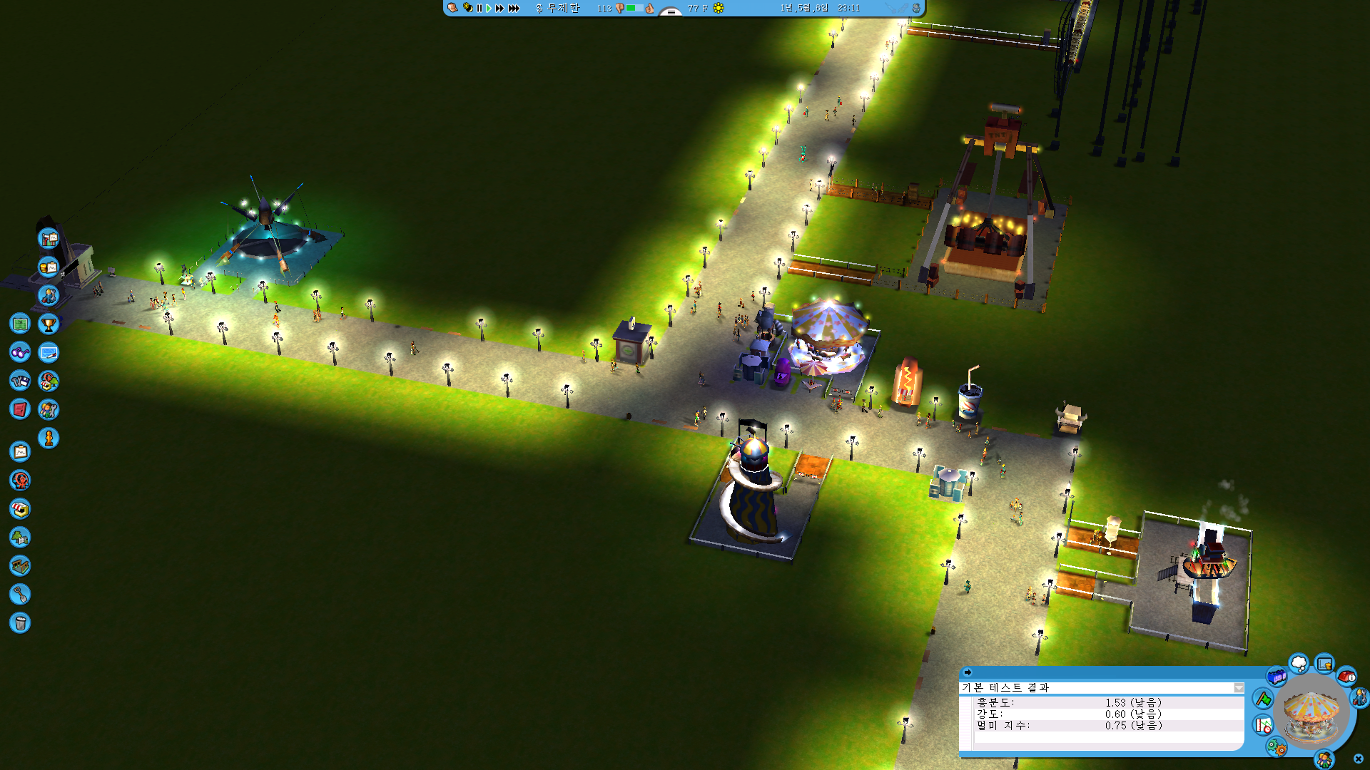 또 기존에 완성된 디자인을 이용하여 놀이기구를 설치했더니 높이가 있어서 경사로를 만들어줘야 하는 부분이 있는데, 튜토리얼을 안 해서 경사로를 만드는 방법을 모르겠어요. 옛날에 해봤던 게임이라고 자신 있게 플레이했는데 벌써 막혔네요. 그리고 옛날 게임이라 그런지 시야나 위치를 움직이는 조작이 꽤 불편합니다. 추억 보정을 생각하며 플레이했으나, 계속 플레이할 매력은 못 느꼈습니다. 뭔가 조작하는데 직관적이지 않고 마우스를 올려서 하나하나 확인해야 하는 부분도 아쉬웠고, 지금의 저에게 맞는 게임은 아닌듯해요.