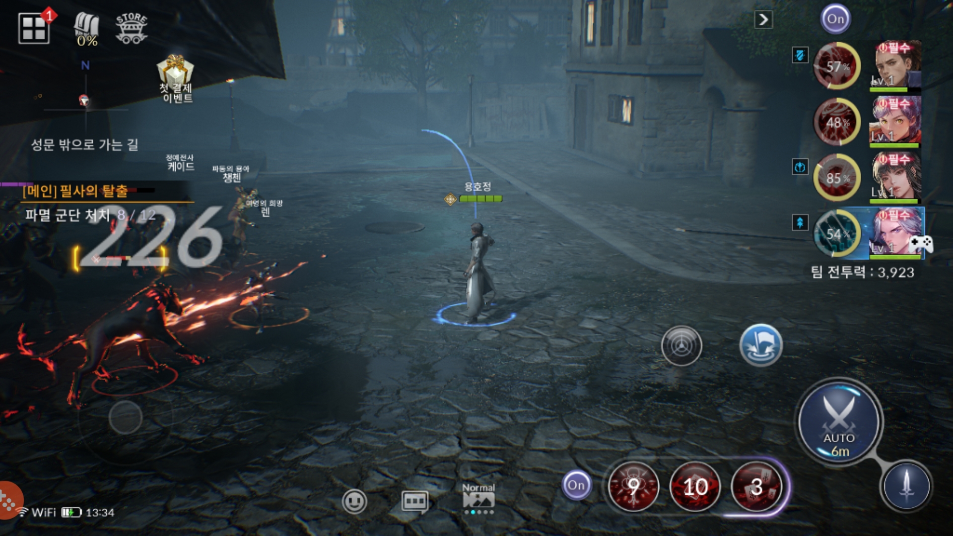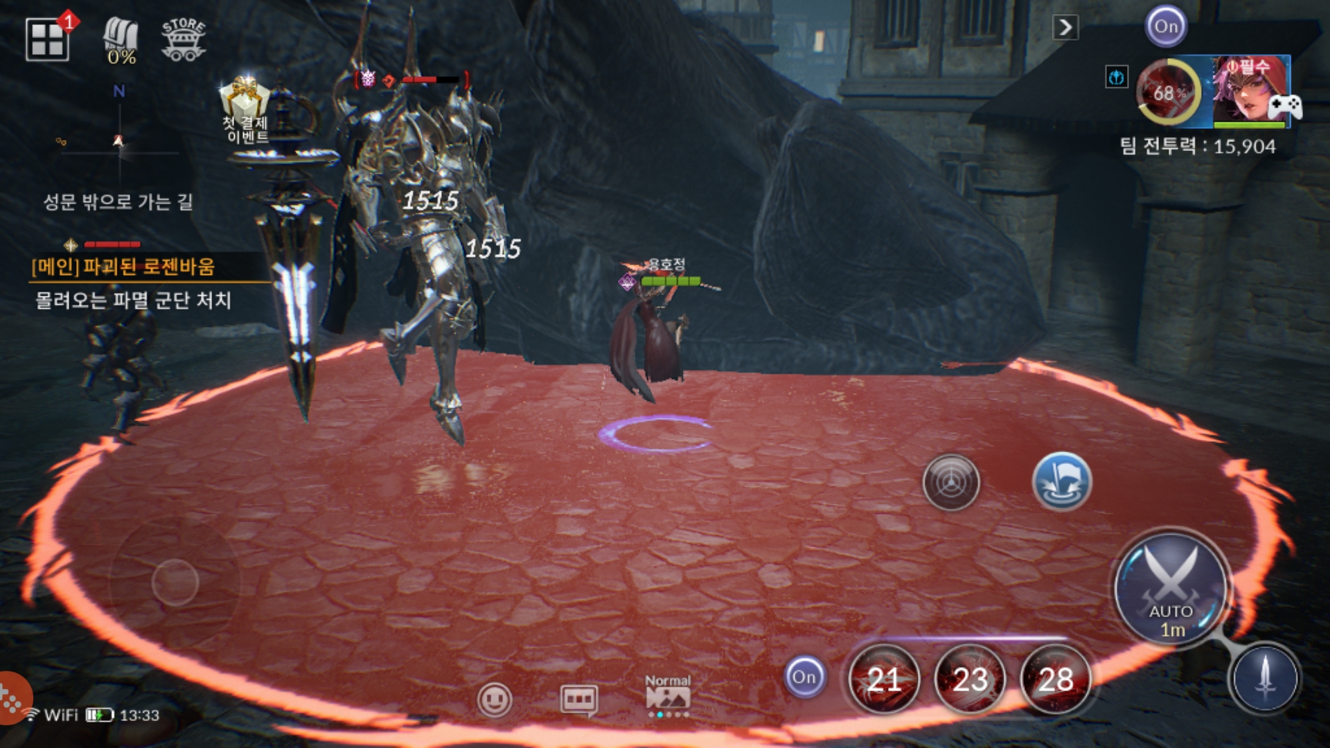 단점을 얘기하자면 수동 조작 시 이동 키와 공격 키 or 스킬 키를 동시에 사용할 수 없습니다. 흔히 말하는 무빙 공격이 안되고 공격을 하려면 말뚝 딜을 해야 한다는 게 가장 별로였습니다. 또, 적이 공격할 때 장판으로 표시가 되는데 회피기가 없습니다. 그 흔한 구르기도 없고 장판이 뜨면 밖으로 나가기 전에 맞아요. 그냥 오토 돌리거나 말뚝 딜 하세요.
