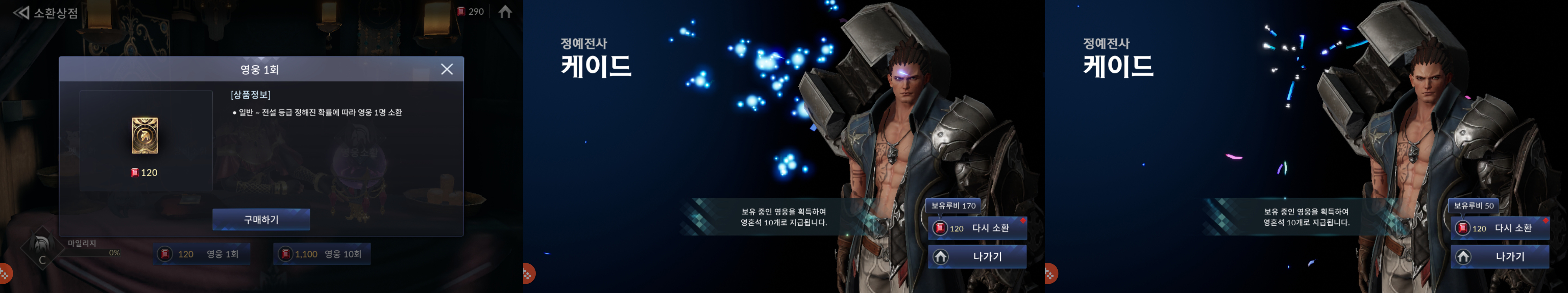게임 삭제 전에 모아둔 보석으로 뽑기를 진행했는데, 스토리에서 기본으로 지급해준 영웅이 두 번 나오면서 미련조차 남지 않게 되었습니다.