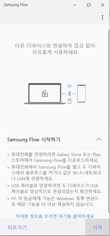 우선 PC는 마이크로 소프트 스토어에서, 스마트 폰은 구글 스토어에서 'Samsung Flow'를 검색해서 받아주세요. 반드시 PC와 스마트 폰 모두 설치하여야 합니다. 그리고 컴퓨터와 스마트 폰이 같은 와이파이를 사용해야 합니다.