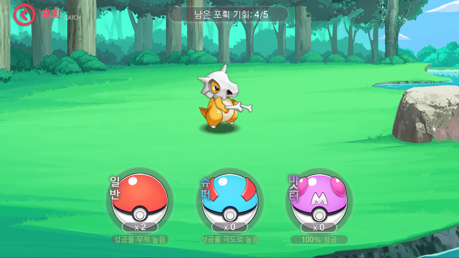 그리고 스테이지를 깨면 맵에 포켓몬이 있는 경우가 있는데 눌러보면 포획도 할 수 있습니다.