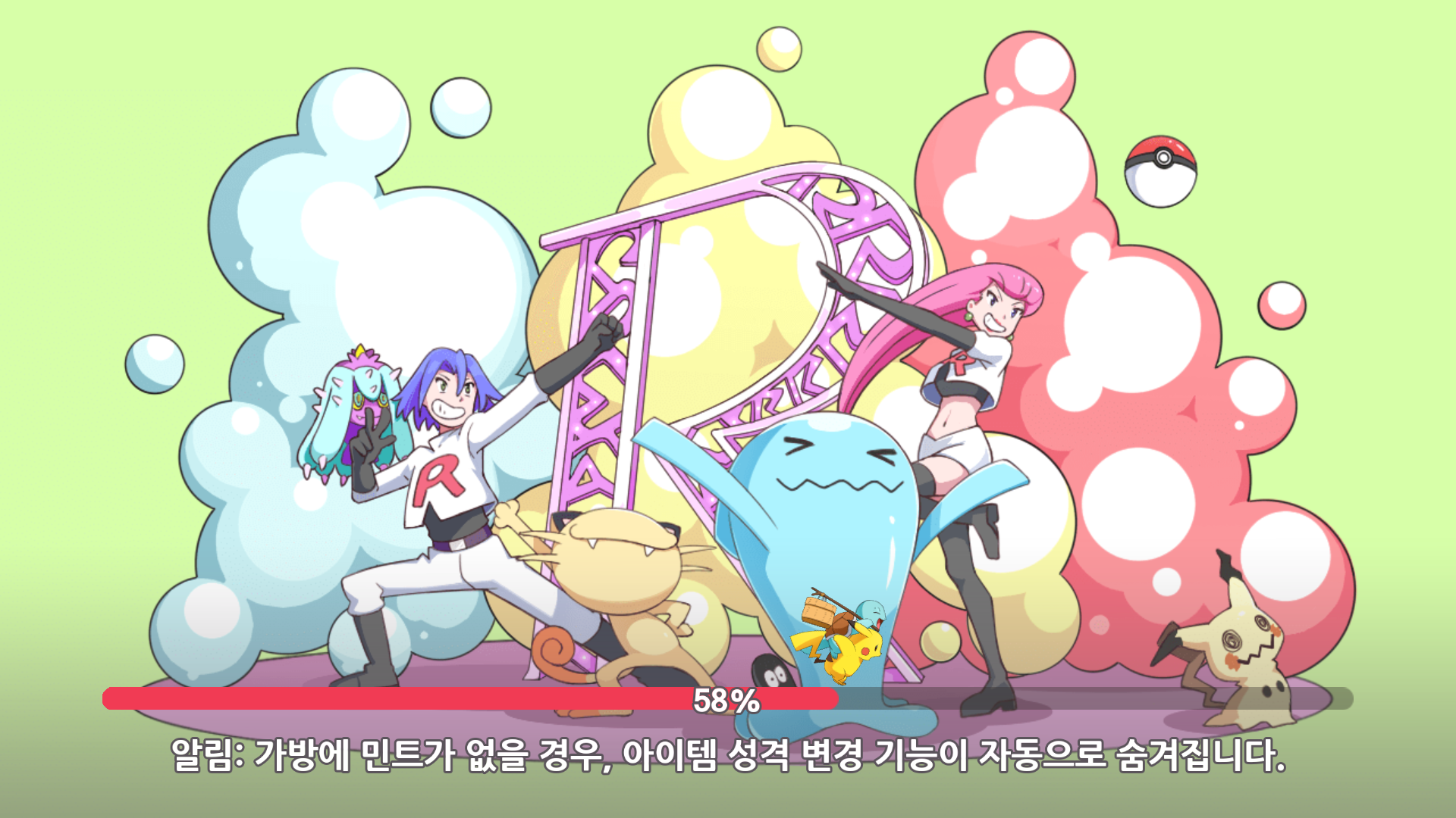우선 첫 로딩 화면에서 로켓단이 등장하는 걸 보니 '공식 포켓몬 게임인가'하는 생각이 듭니다.