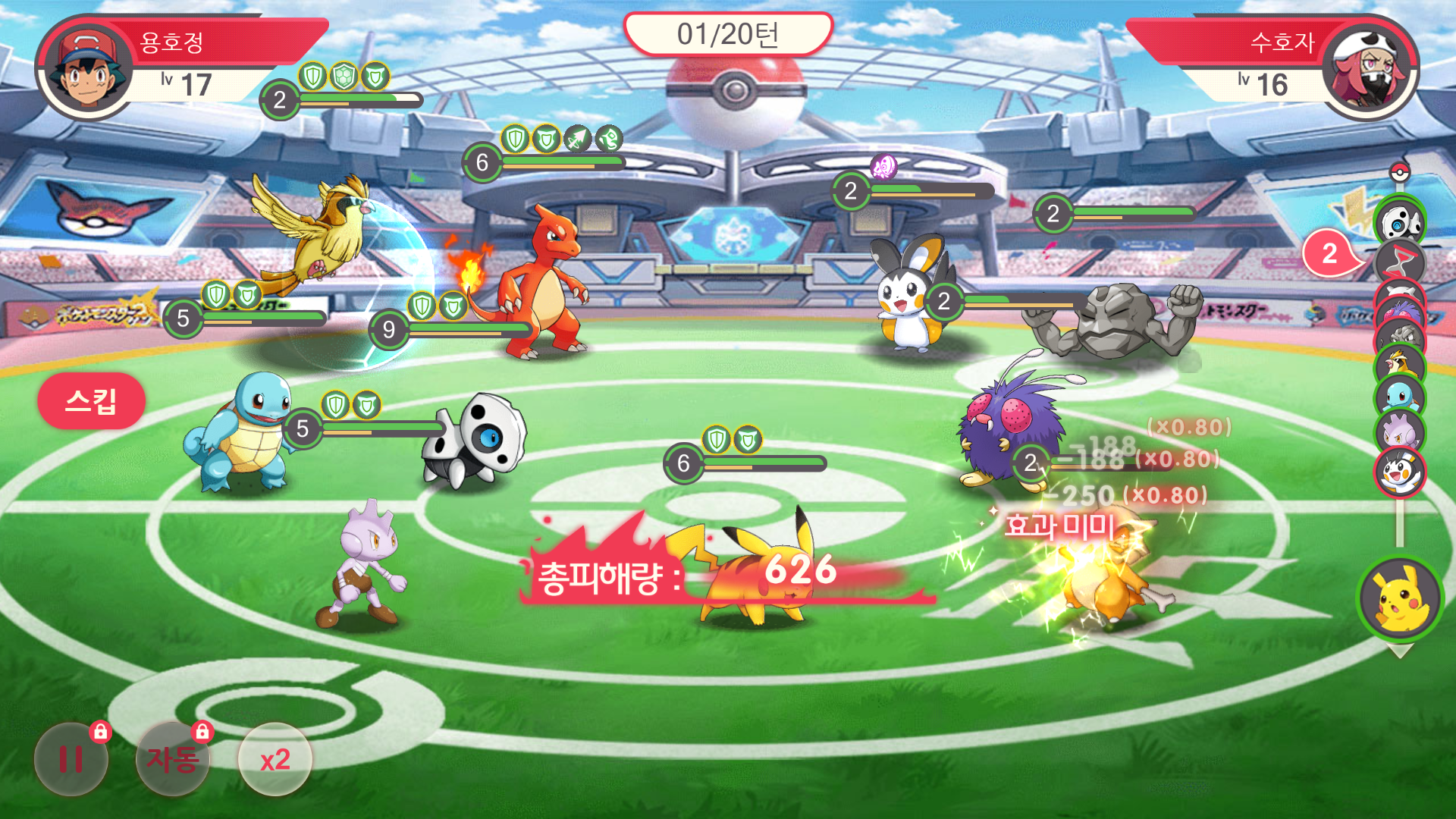 피카츄는 고속이동 후 전기 공격을 하는데 개인적으로 연출 중에 피카츄가 가장 잘 나왔다고 생각합니다.