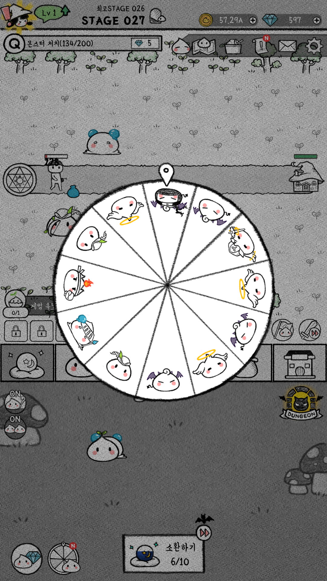 소환 왼쪽에는 슬라임 뽑기 룰렛도 있는데 처음은 무료로 가능하고, 다음에는 광고를 시청하면 뽑을 수 있습니다.