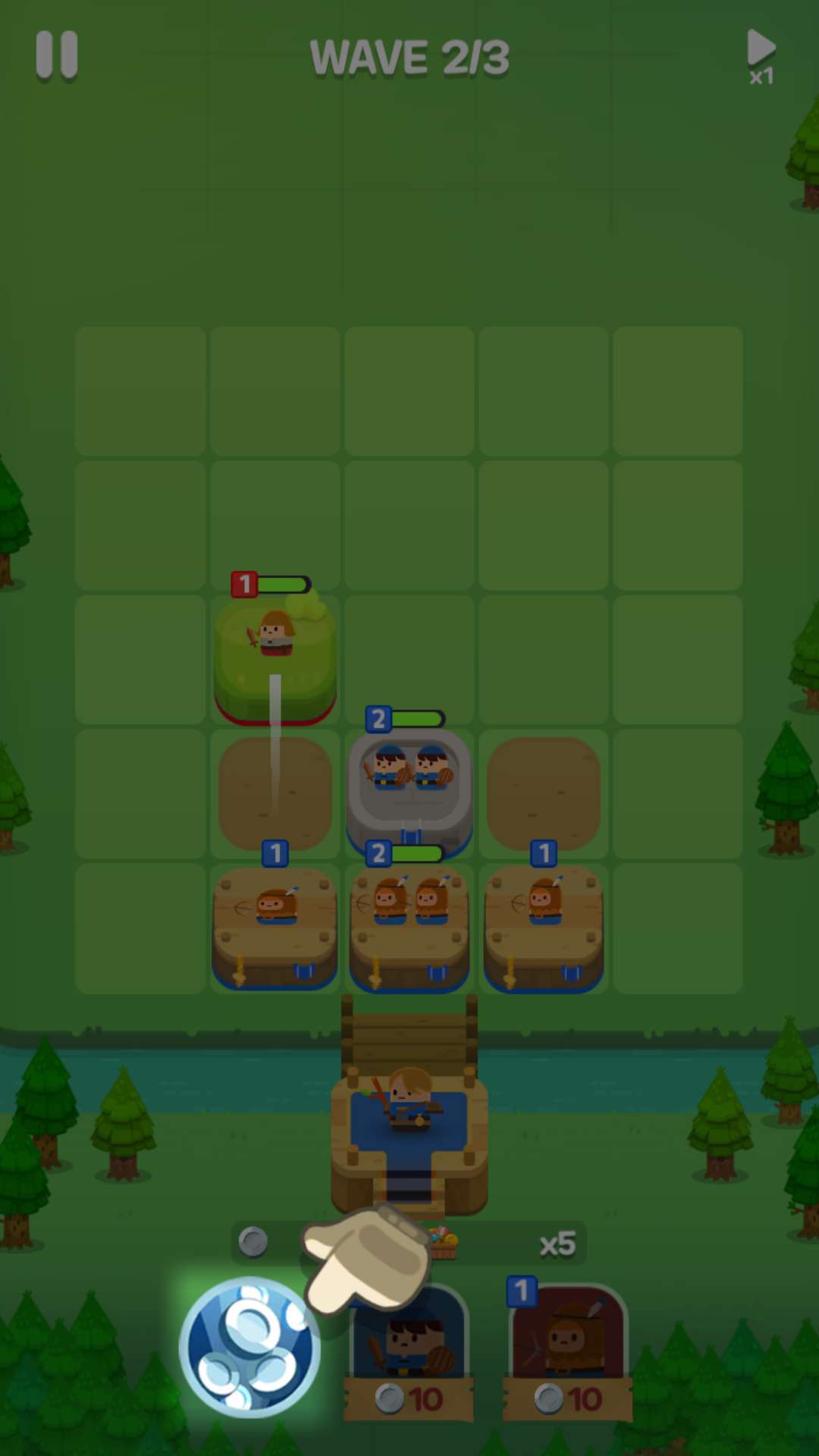 한 웨이브가 끝나면 영토를 확장할 수 있는데, 블럭과 블럭을 합쳐서 다음 단계의 블럭을 만들어야 하기 때문에 영토의 확장이 중요해요. 나중 가면 은화가 있어도 자리가 없어서 블럭을 생성하지 못할 수도 있습니다.