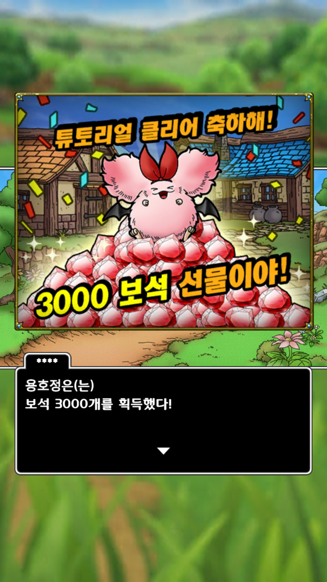 튜토리얼을 클리어하면 3천 보석을 주는데 다른 게임과는 다르게 튜토리얼이 되게 짧아요 2분도 안 걸립니다. 요즘 게임은 튜토리얼을 길게 뽑아서 리세마라를 최대한 어렵게 해 놓는데 이 게임은 정말 쉽습니다.