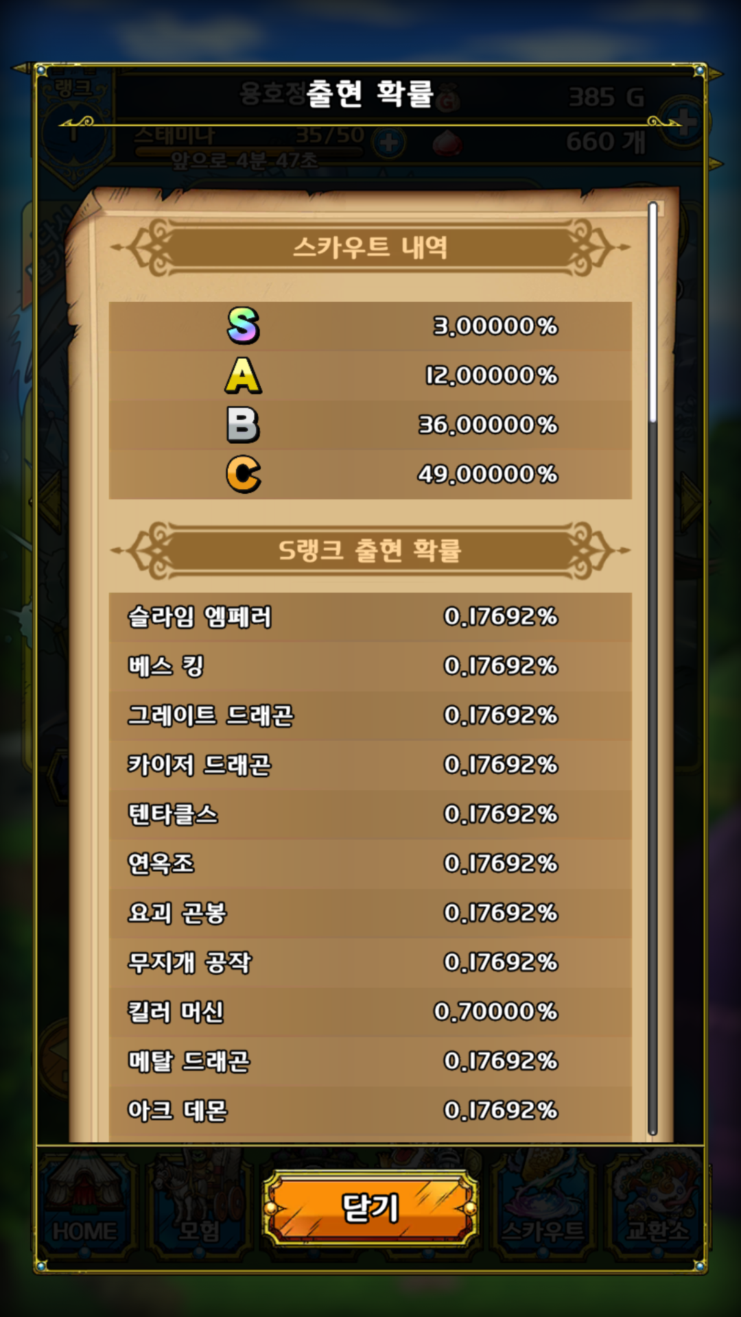 S랭크의 출연 확률은 3프로입니다. 그런데 체감은 더 낮은 느낌이에요.