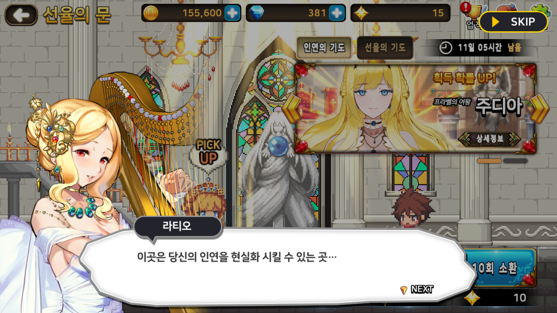 스테이지 1-5까지 클리어를 하면 '선율의 문'에서 동료 뽑기를 진행할 수 있습니다.