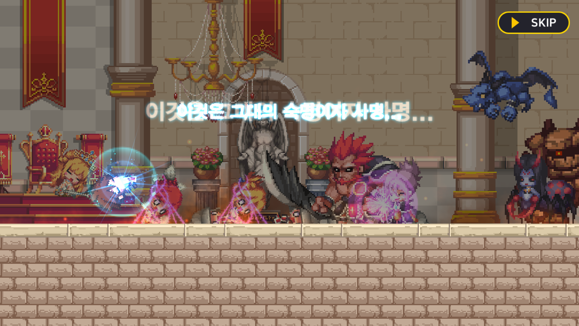 게임을 시작하면 스토리를 보여주는데 '크루세이더 퀘스트'를 해보신 분들은 알 겁니다. 뒤에 있는 캐릭터들의 눈이 크루세이더 퀘스트 영웅들이 짓는 표정 중 하나와 상당히 유사해요.