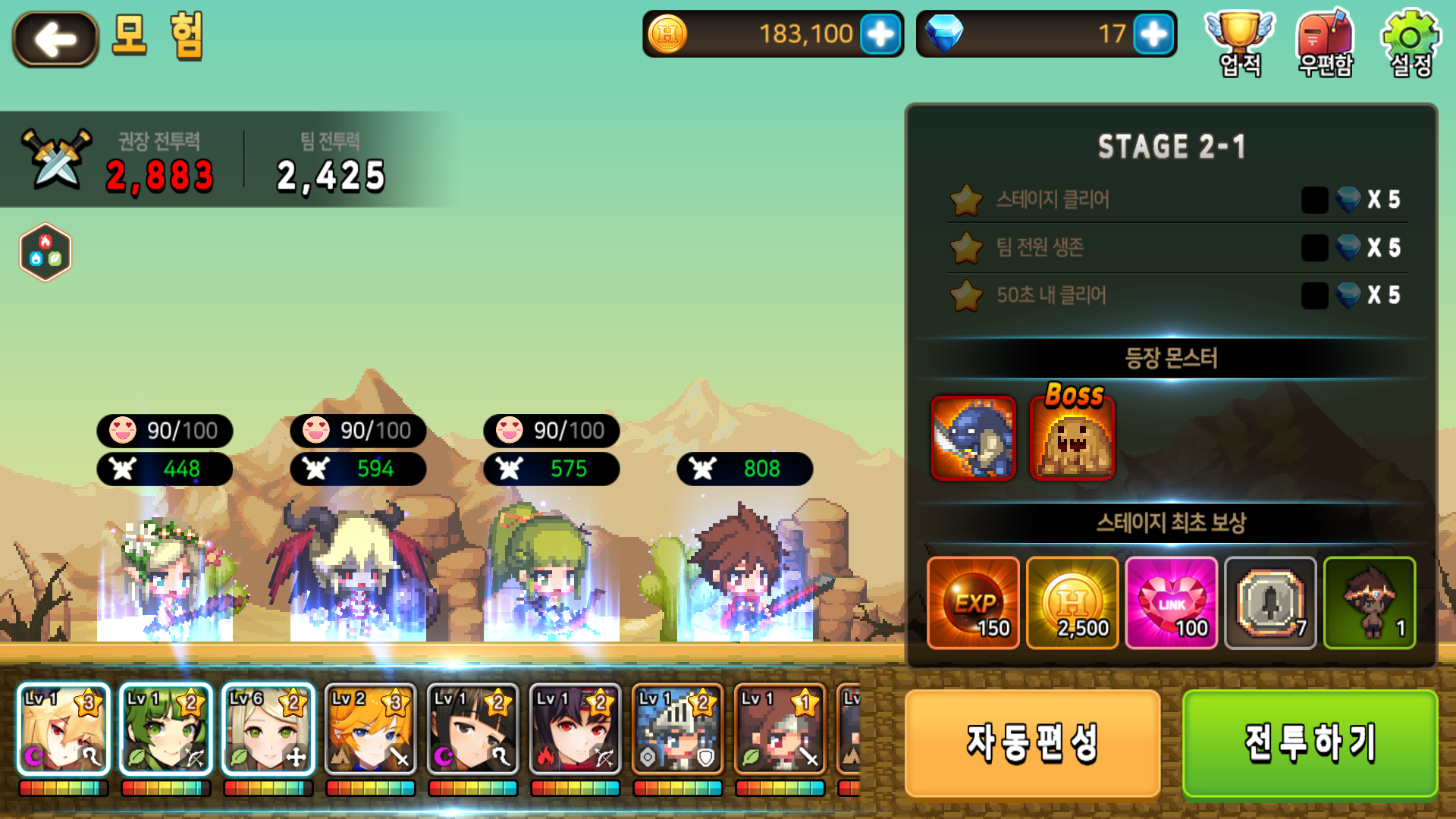 그래도 권장 전투력을 높게 잡아둔 건지 힐러가 있어서 그런지 2,300의 전투력으로 깨긴 깼네요.