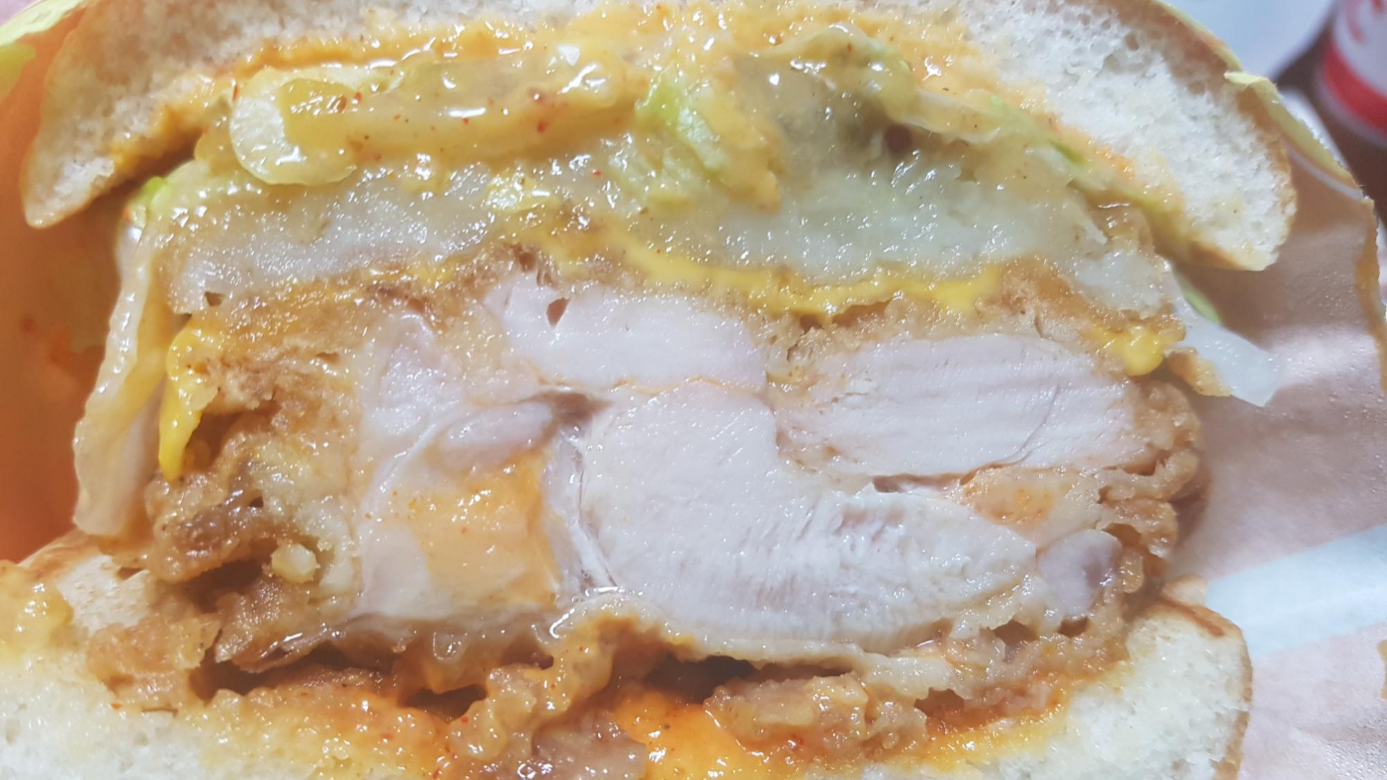 <징거 버거> 제가 정말 안 좋아하는 버거입니다. 버거 구성은 치킨 가슴살 패티, 토마토, 양상추, 양파가 들어있는데 가슴살이 생각만큼 퍽퍽하진 않아요. 근데 버거 자체가 맛이 없습니다. 이거 먹을 바엔 맥도날드의 베이컨 토마토 디럭스를 먹겠어요.
