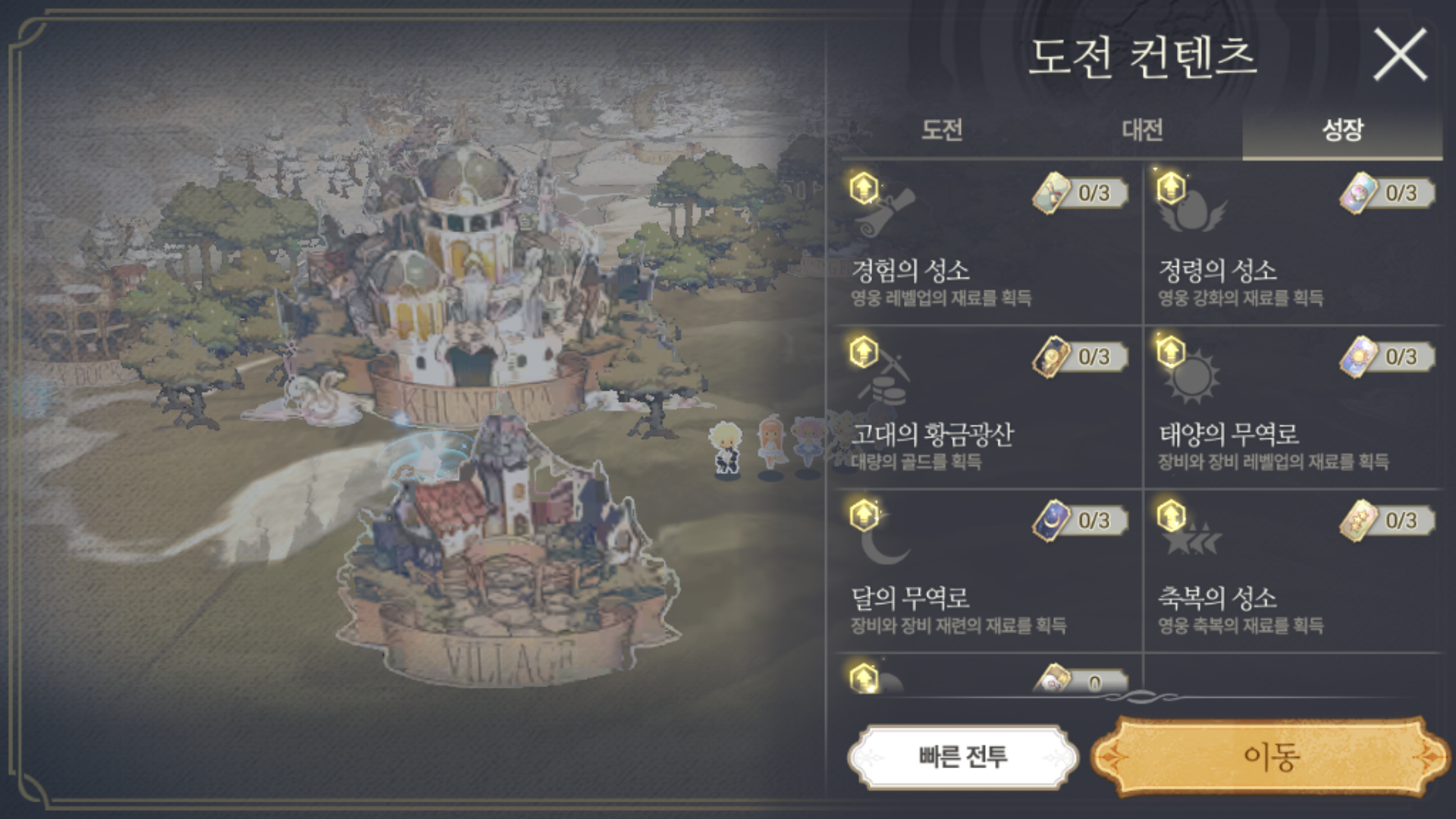 게임은 도전, 대전, 성장 컨텐츠가 있고, 각 던전은 빠른 전투를 할 수 있지만 각 던전마다 요구하는 최소 전투력이 있어서 속성별 영웅을 3마리는 키우셔야 합니다. 제가 해보니 추천드리는 방식은 본인의 국가 덱에서 주요 영웅 2명을 확실하게 키우시고 남은 3자리를 속성에 필요한 영웅을 키우시면 돼요. 예를 들면 스페셜 던전 빠른 전투의 전투력 요구치는 175만인데 저는 주요 2마리에서 120만을 챙기고 나머지 3자리는 적당히 키운 속성별 영웅으로 55만을 채워서 돌립니다.